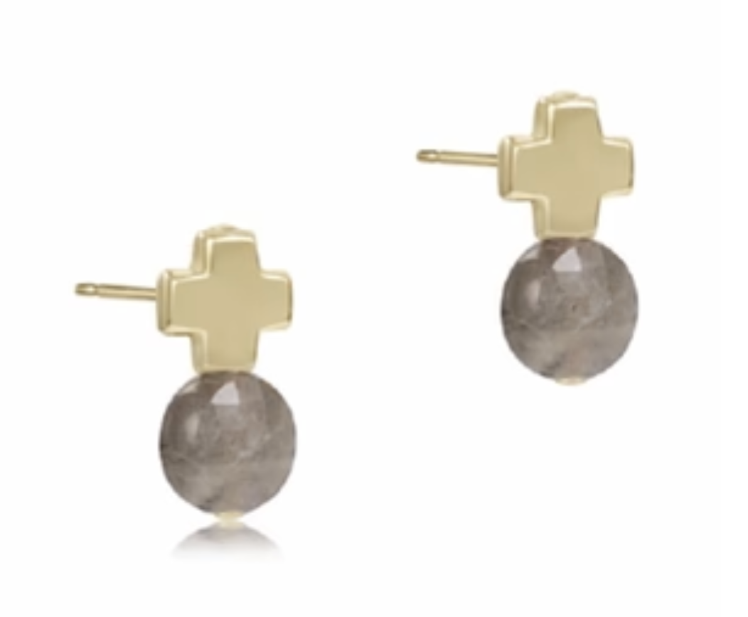 E Newton Signature Cross Gold Stud Labradorite