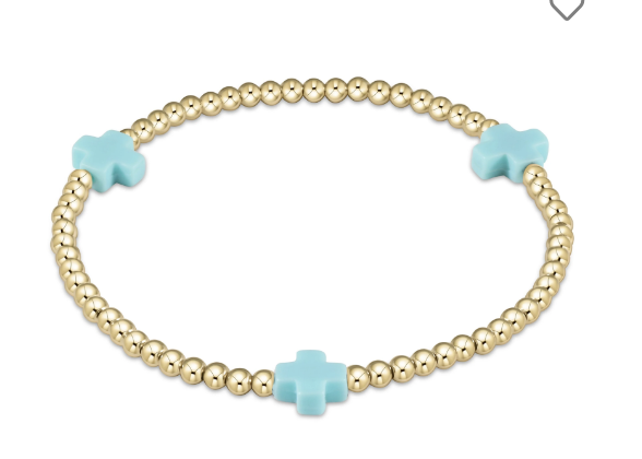 E Newton Signature Cross Pattern 3mm Bead Bracelet Mint.
