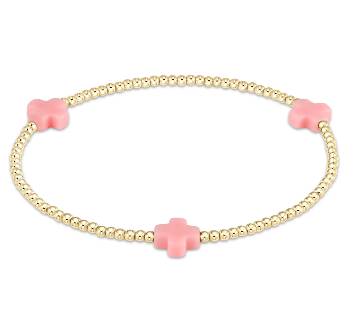 E Newton Signature Cross Small Gold Pattern 2mm Bead Bracelet Pink