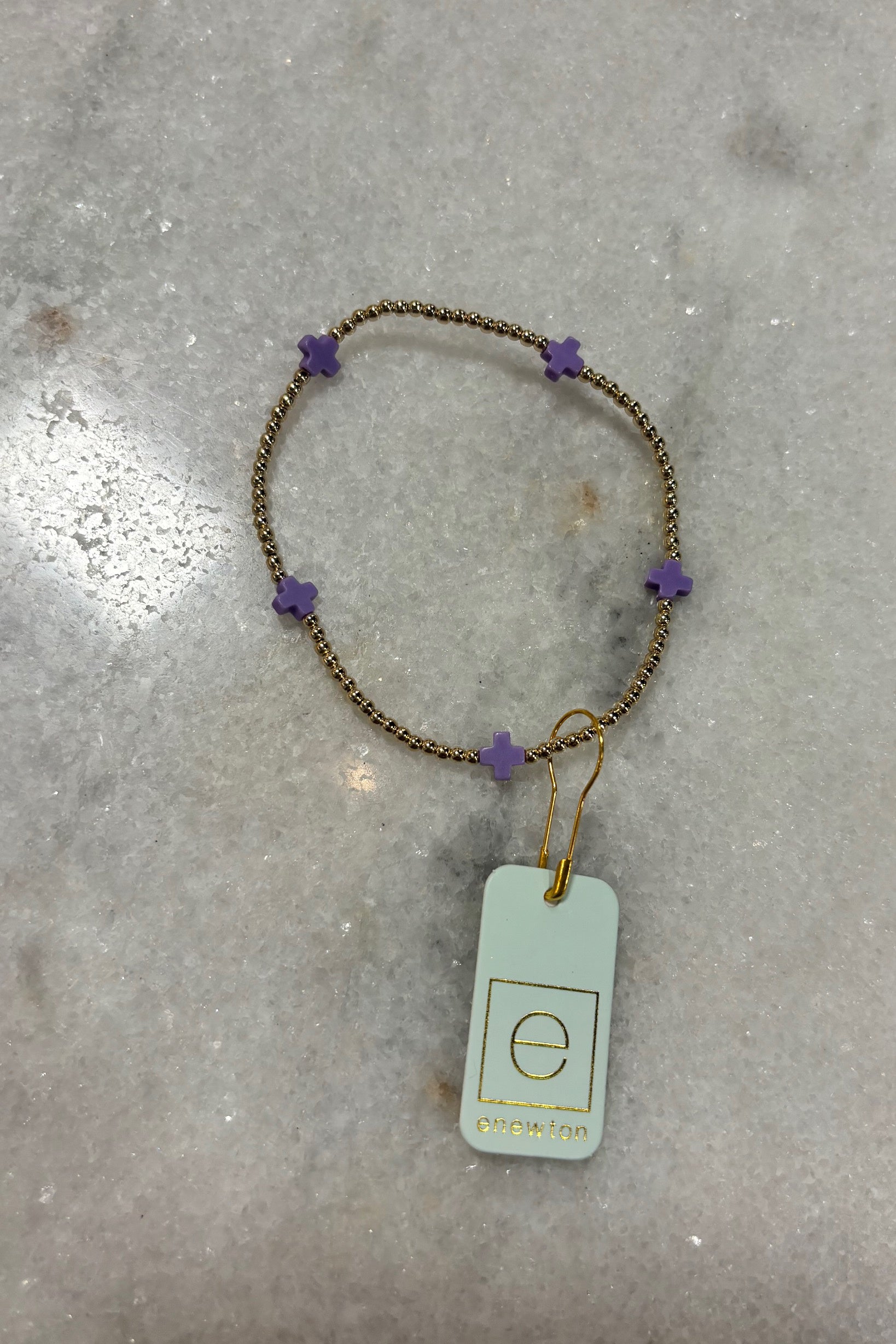 E Newton Signature Cross Small Gold Pattern 2mm Bead Bracelet Purple.