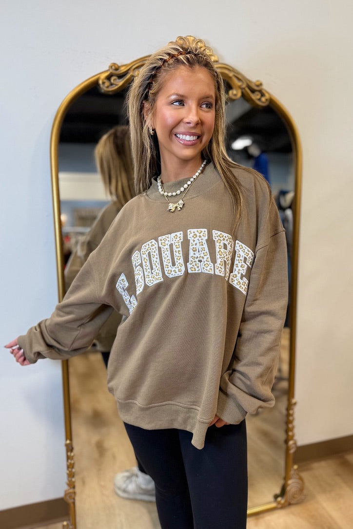 E Squared French Terry Mockneck SS Mocha Leopard