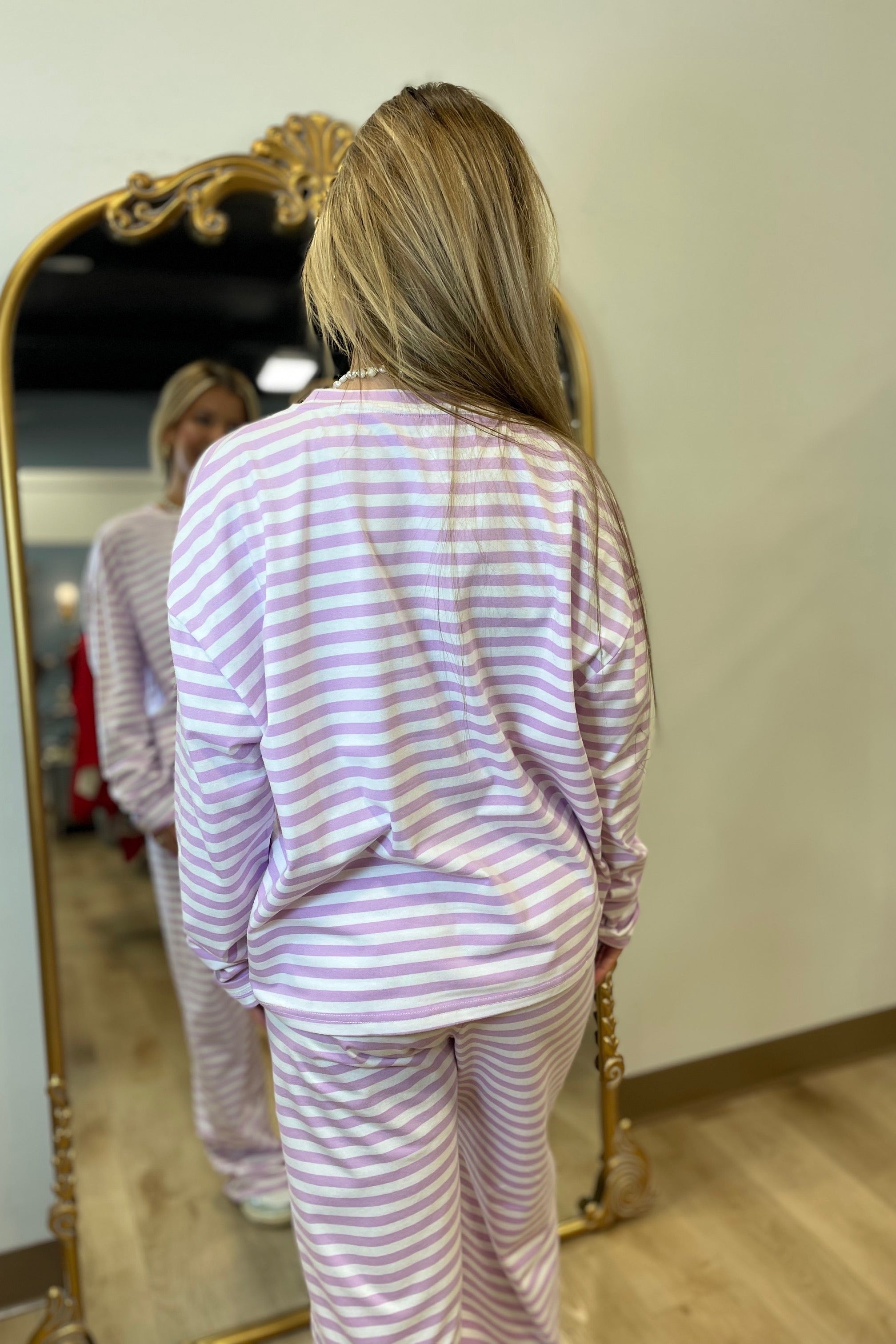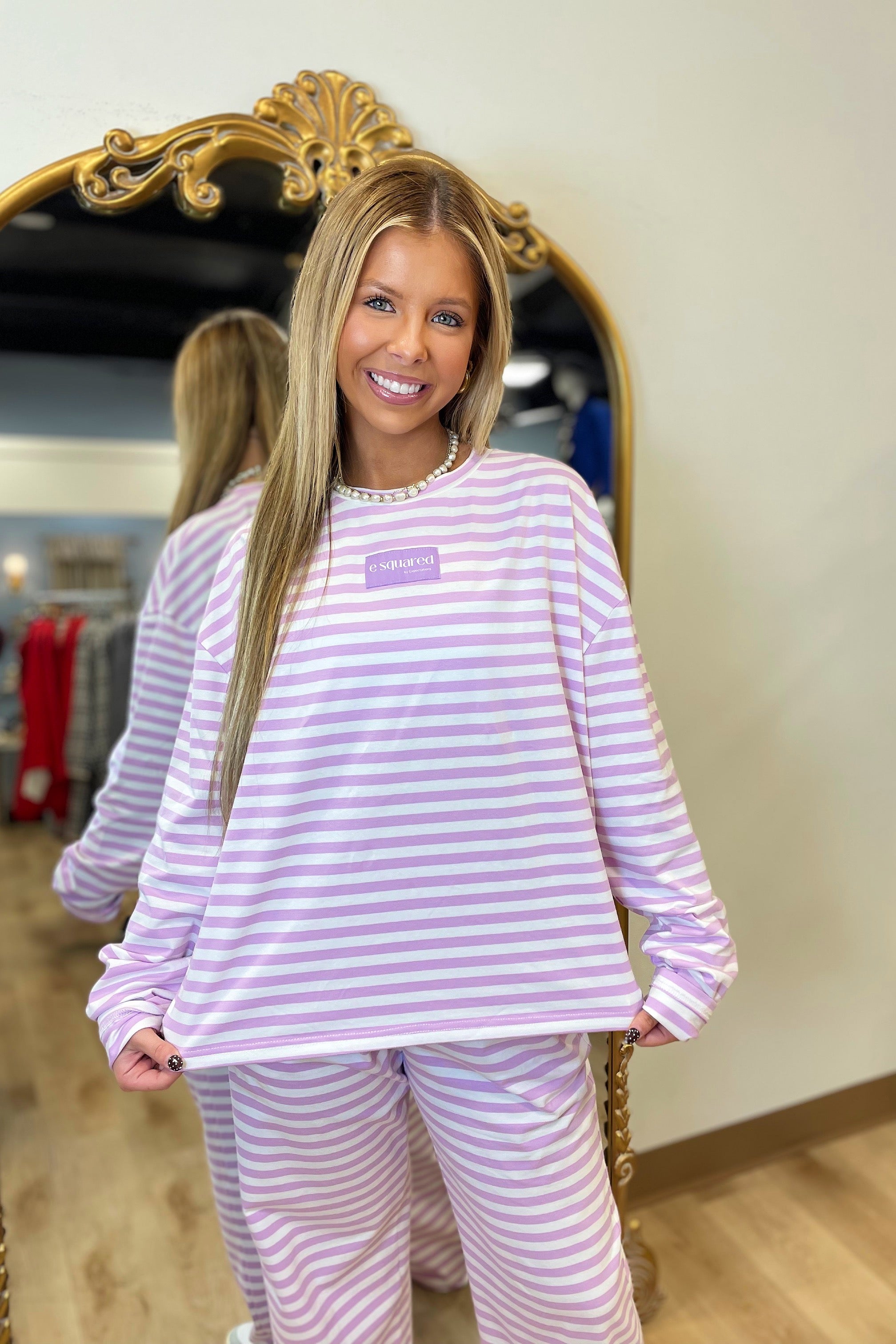 E Squared Striped Loose Long Sleeve Purple