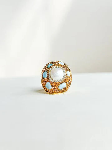 Easton Elle Globe Bling Ring Pearl and Amazonite