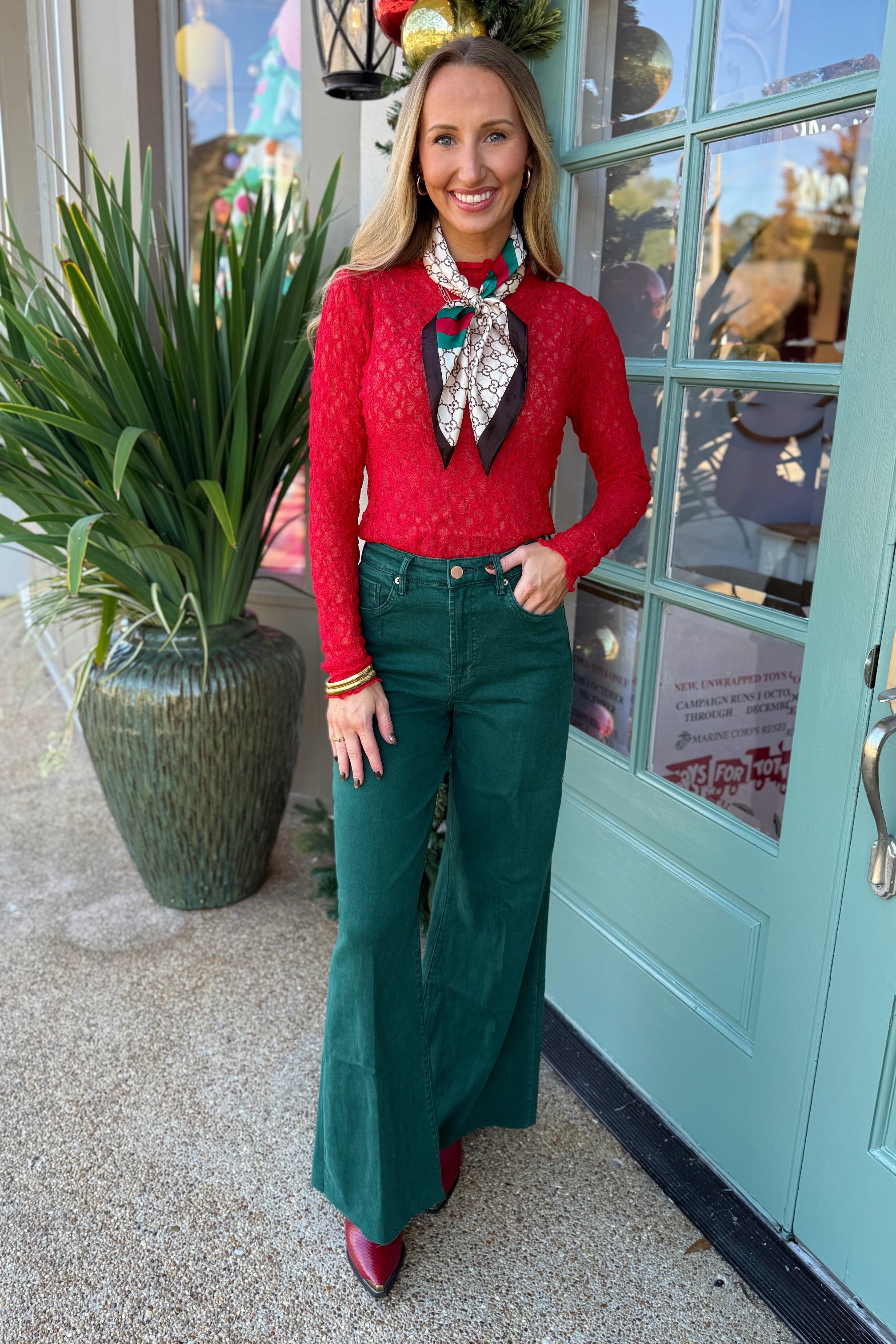 Endless Possibilities Elegant Lace Mock Neck Top Red