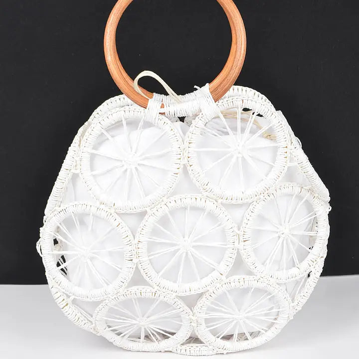 Faux Straw Round Tote Bag Various