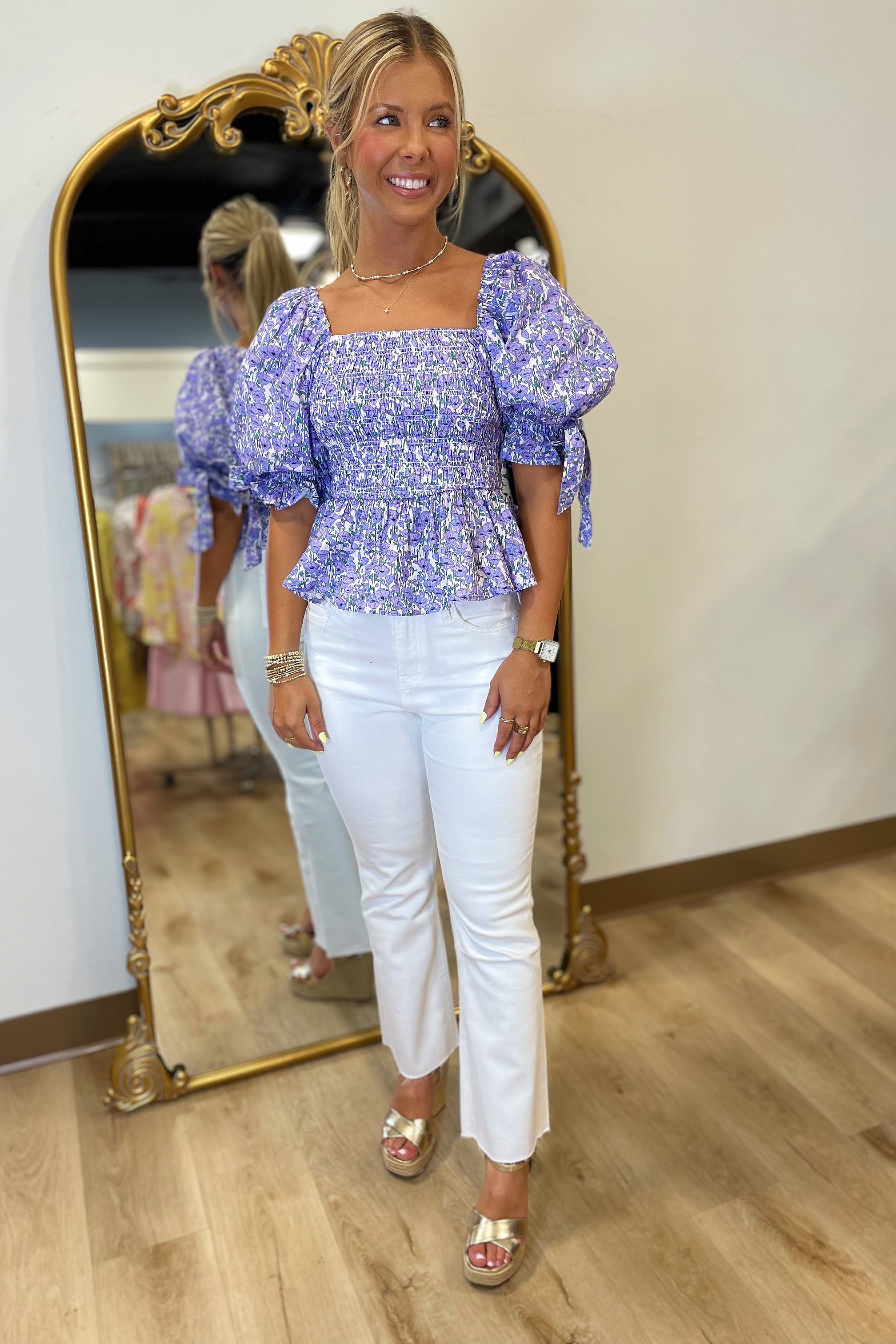 Flower Power Top Smocked Purple