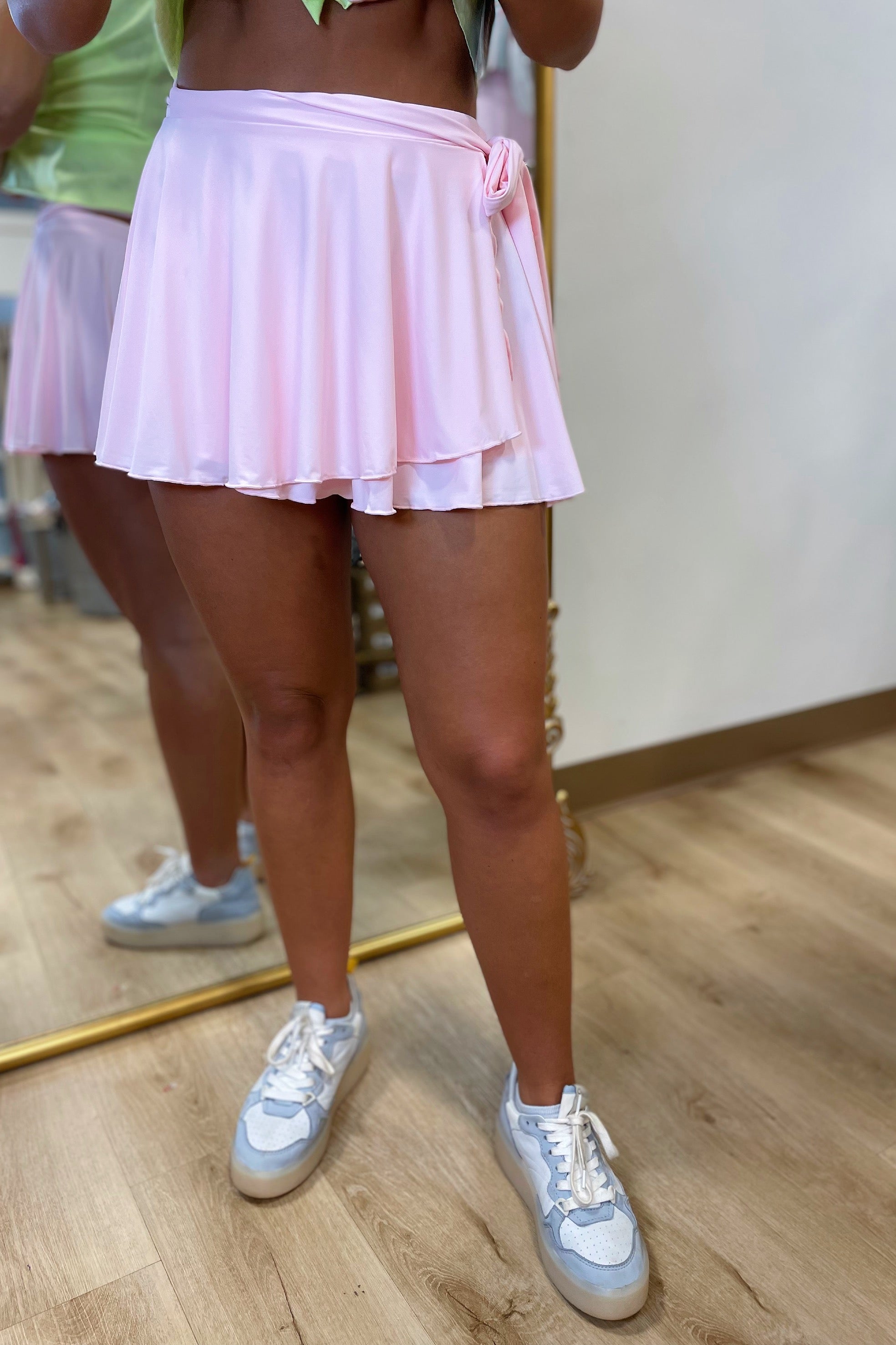 Ballet-inspired skort with a wrap front and tie closure. Has built-in shorts.