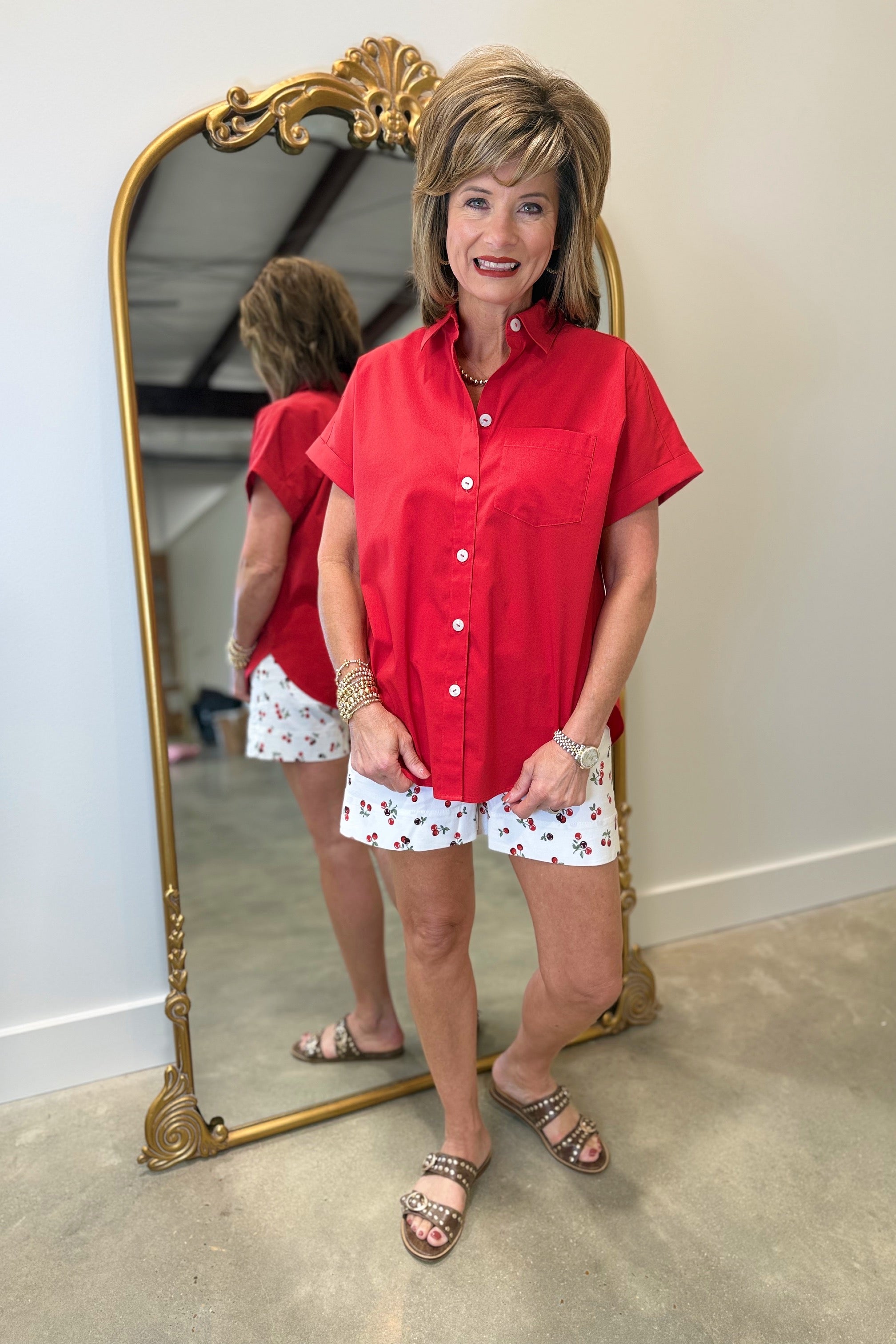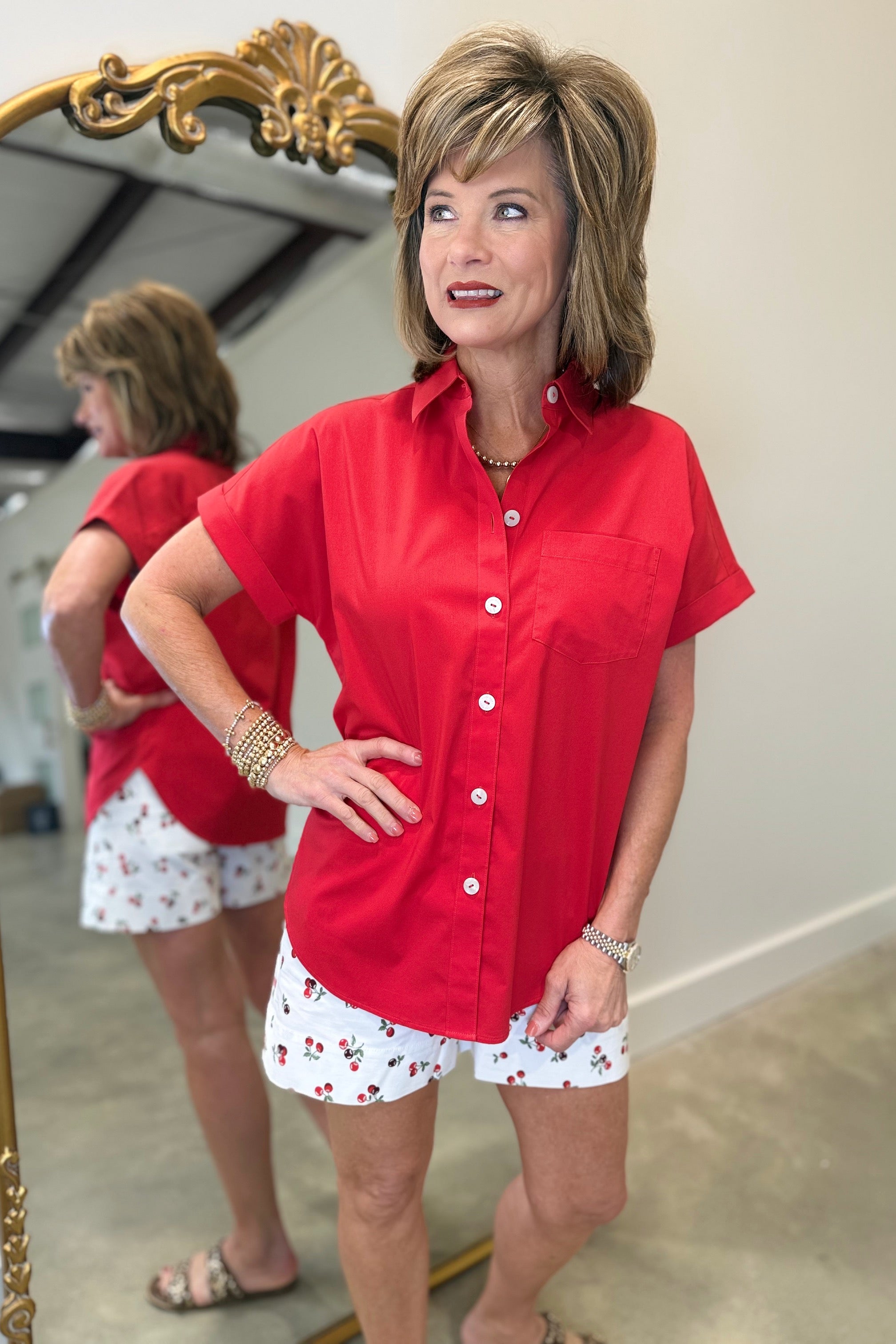 Foxcroft Abigail Short Sleeve Stretch Shirt Red