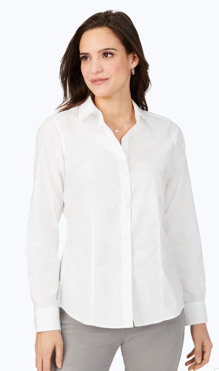 Impeccable from start to finish, meet our newest women’s non-iron shirt, the Dianna. Front and back darts flatter, while the flawlessly smooth cotton fabric works around the clock to keep you absolutely polished.
