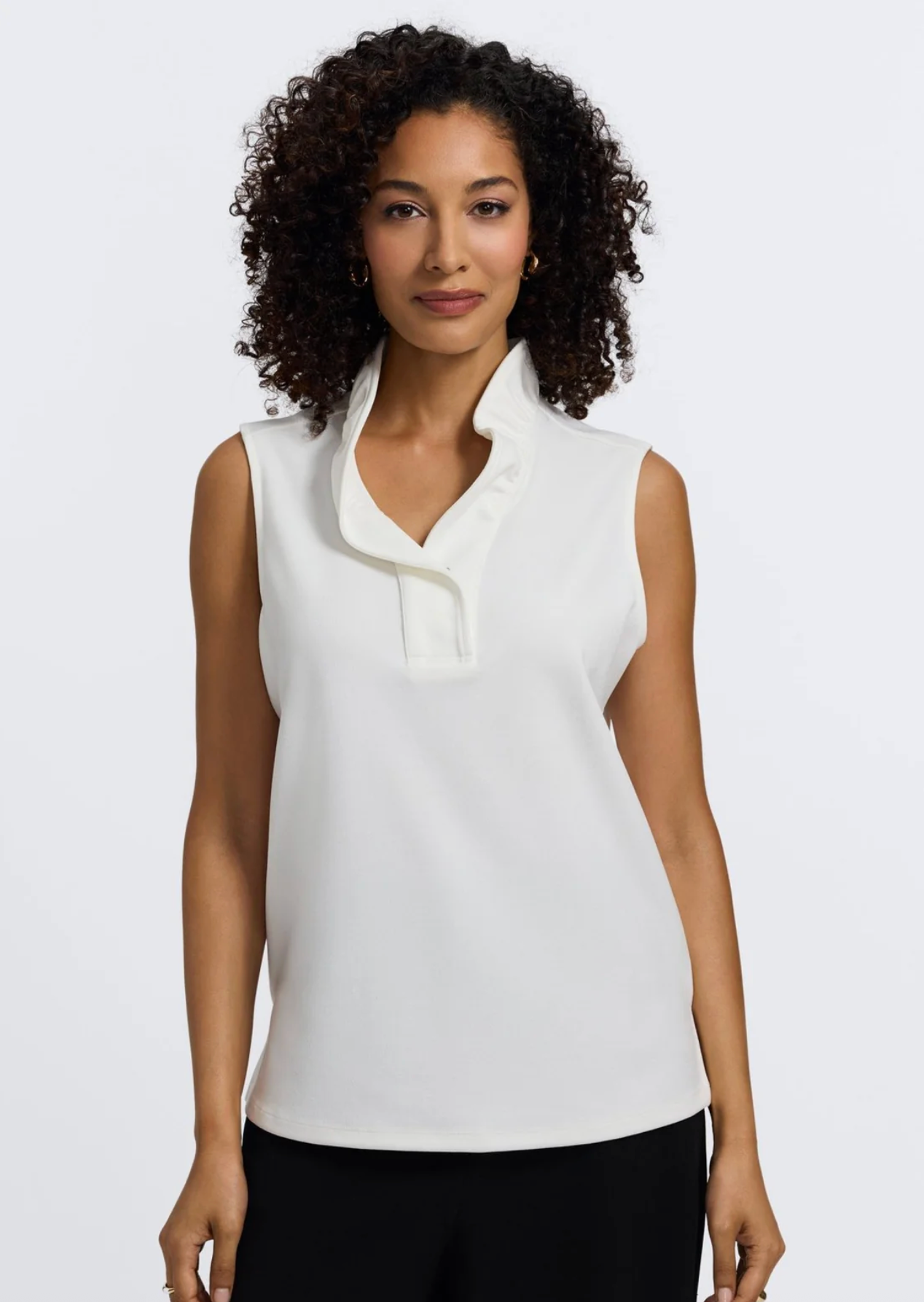 Effortlessly refined, the Tammy Knit Crepe Sleeveless Tank offers the perfect balance of comfort and sophistication. Crafted from our lightweight knit crepe fabric, this versatile piece features a flattering relaxed silhouette, a softly structured collar, and elegant shirring at the neckline for a touch of modern femininity. The sleeveless design makes it ideal for layering or wearing solo on warmer days. Whether paired with tailored trousers for work or dressed down with denim, this khaki-hued staple transitions seamlessly from day to night.