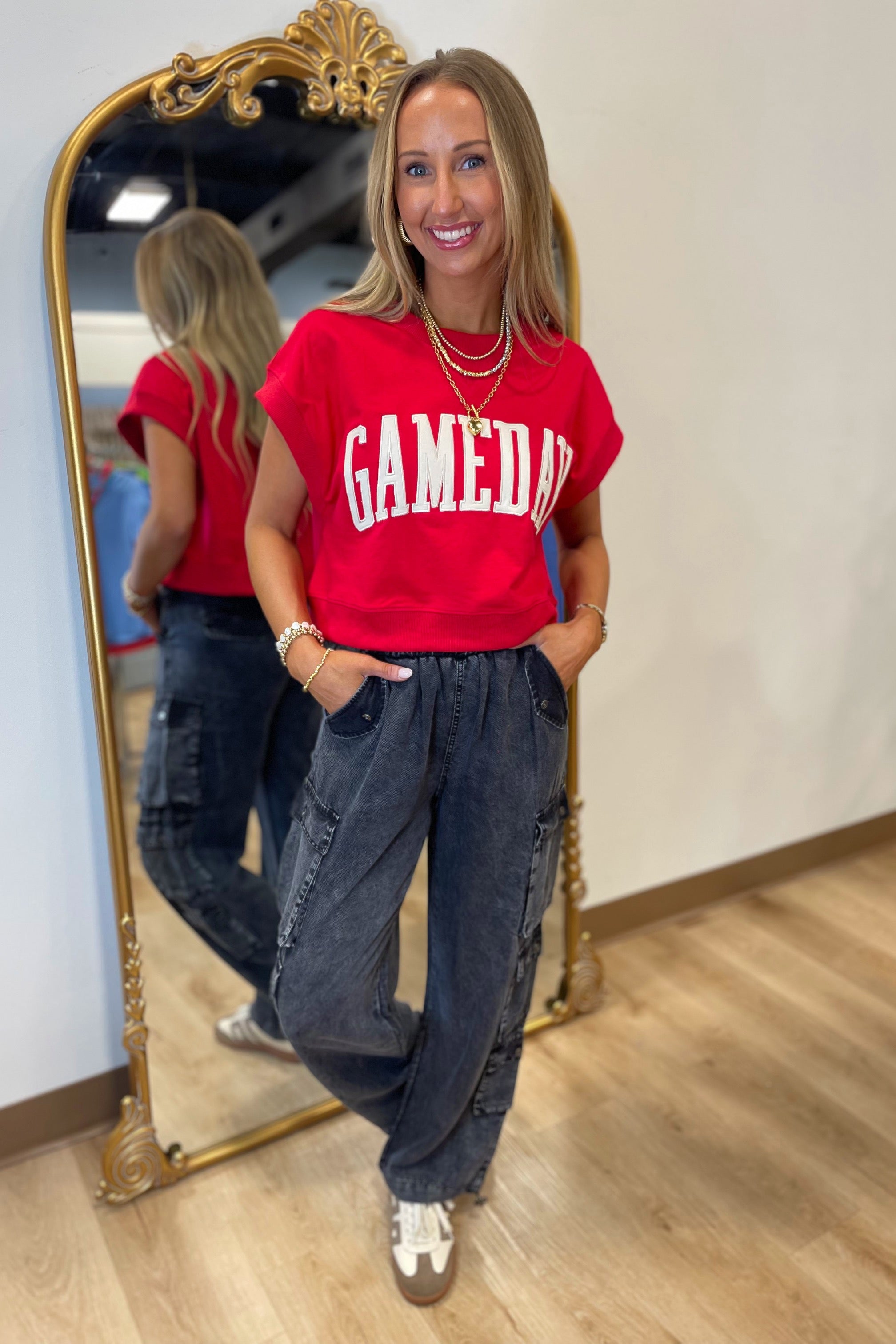 Gameday Boxy Cropped Terry Top Red