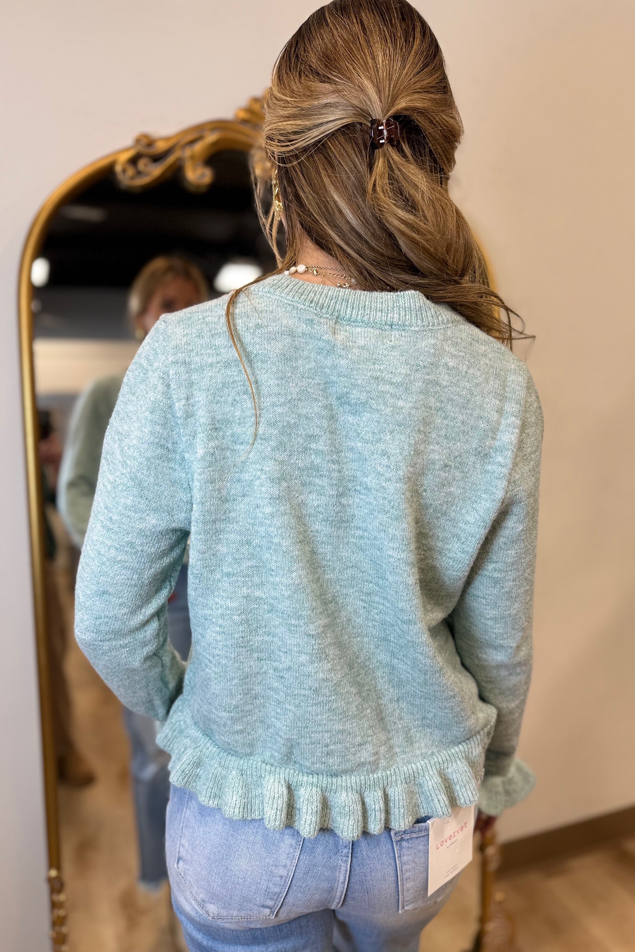 Girly Lace Trim Ruffle Hem Cardigan Sage