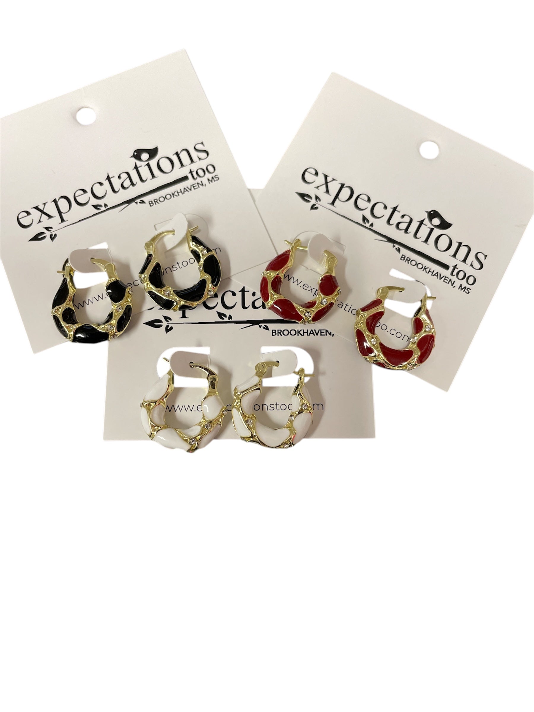 Gold & Enamel Earrings 3 Colors Available; Black, Maroon, White.