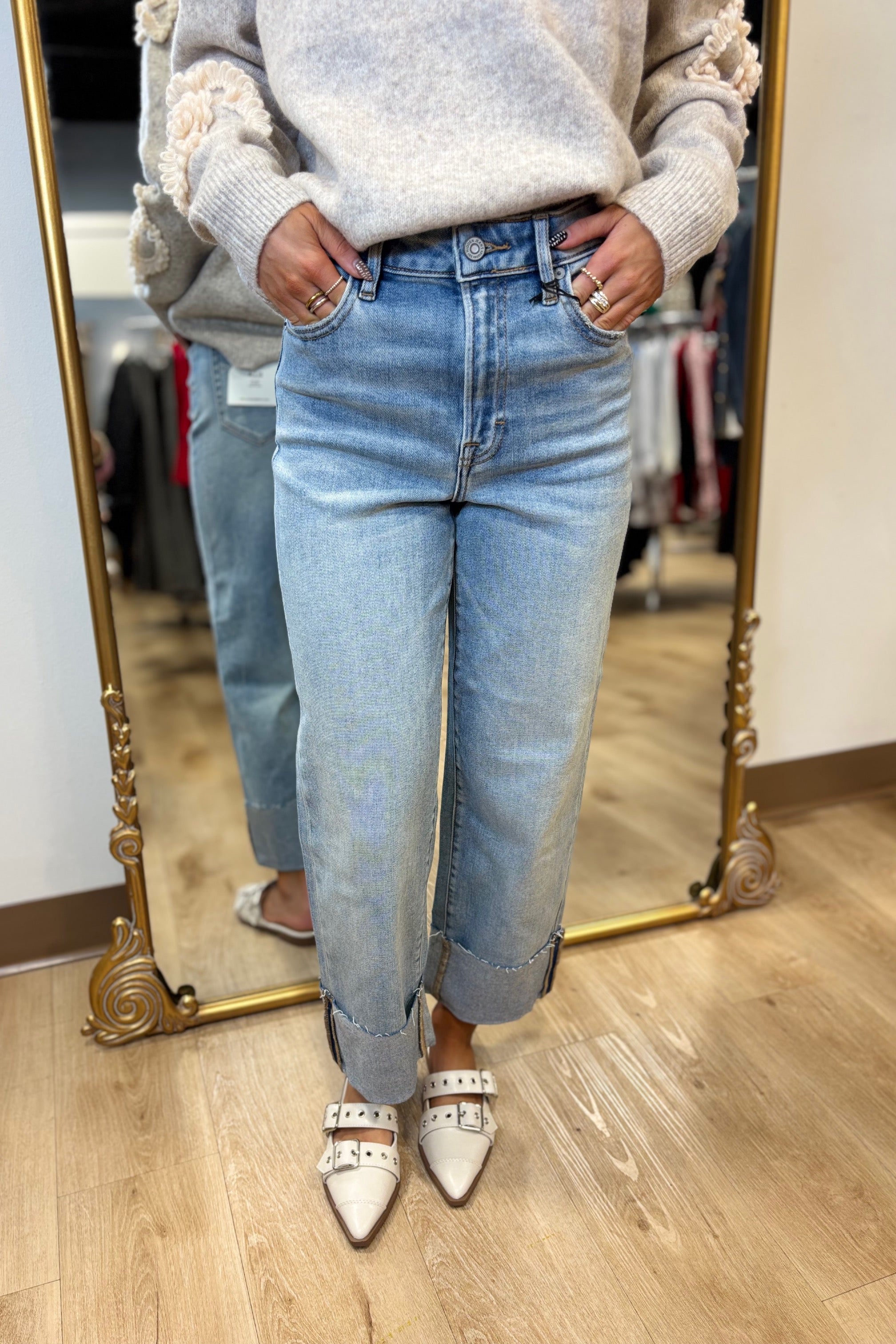 Hidden Vintage Ella High Rise Wide Straight With 4" Wide Cuff Jean.
