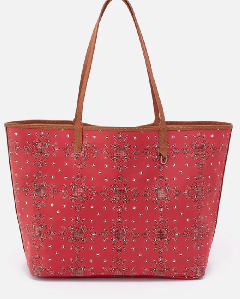 She’s all that and a bag of chips! This carry-all tote is for when your hands are full, but your life is fuller. Lap top? Slip it in. Your wallet? Add that too. A bag of literal chips? This tote can carry it all – and then some! Now in a larger size to carry even more - and red and blue printed bandana leather - this is the bag of your Americana dreams.