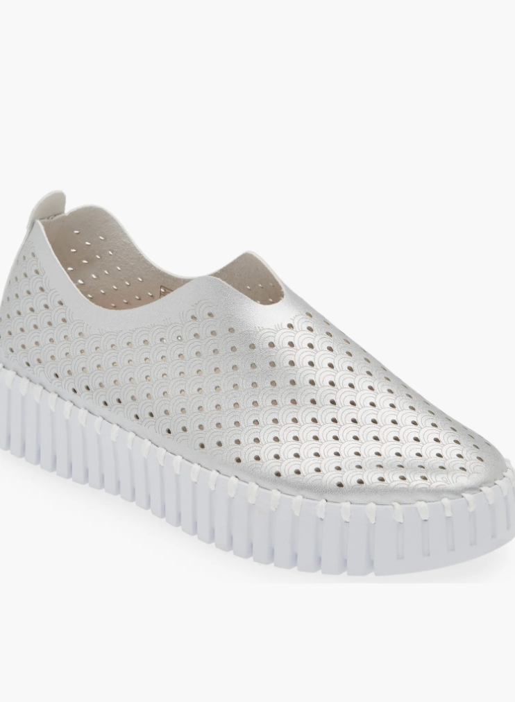 Ilse Jacobsen Tulip 3576 Silver Slip On Sneaker.