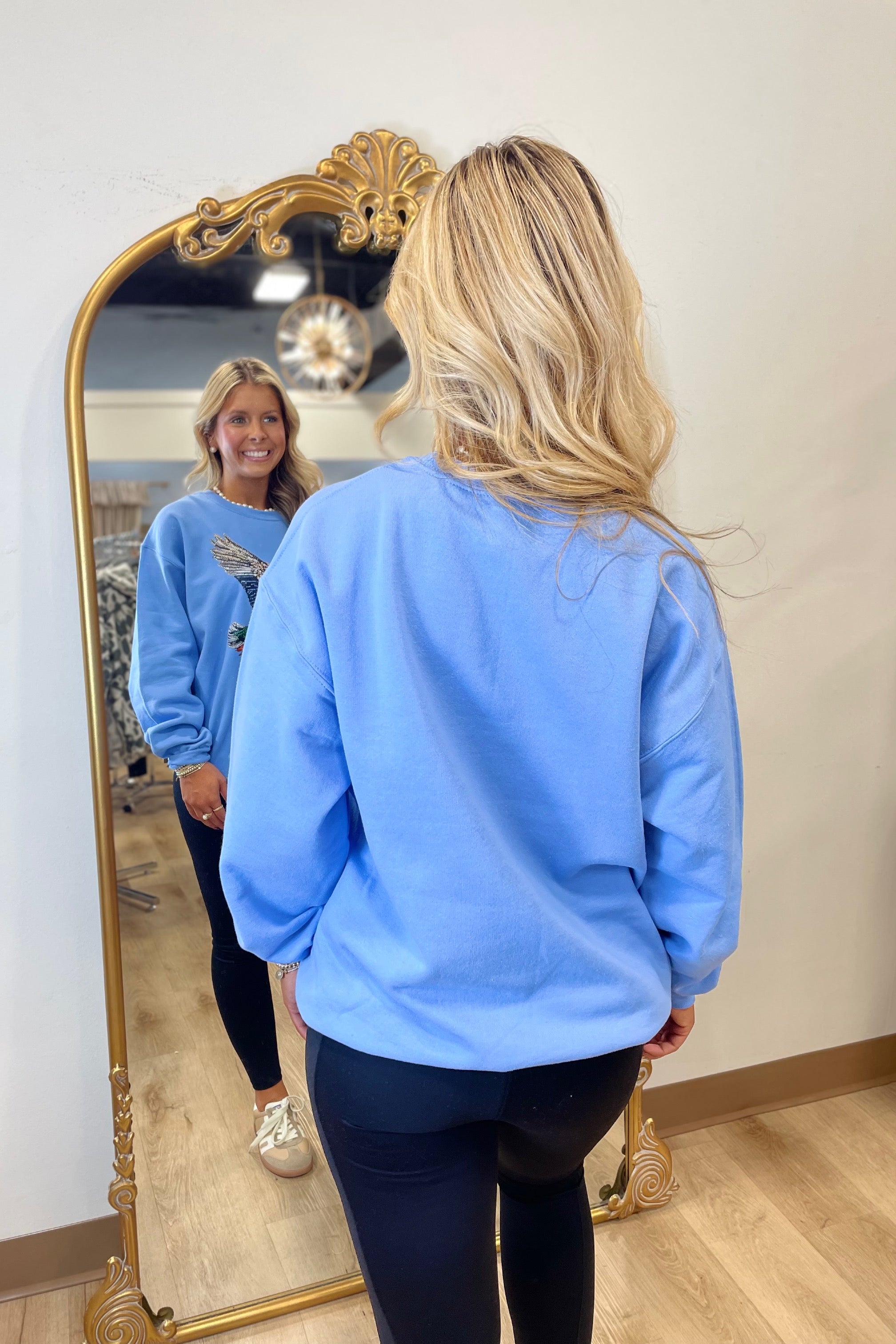 FAUX RHINESTONE In the Wild Crew Neck Sweatshirt Duck Blue