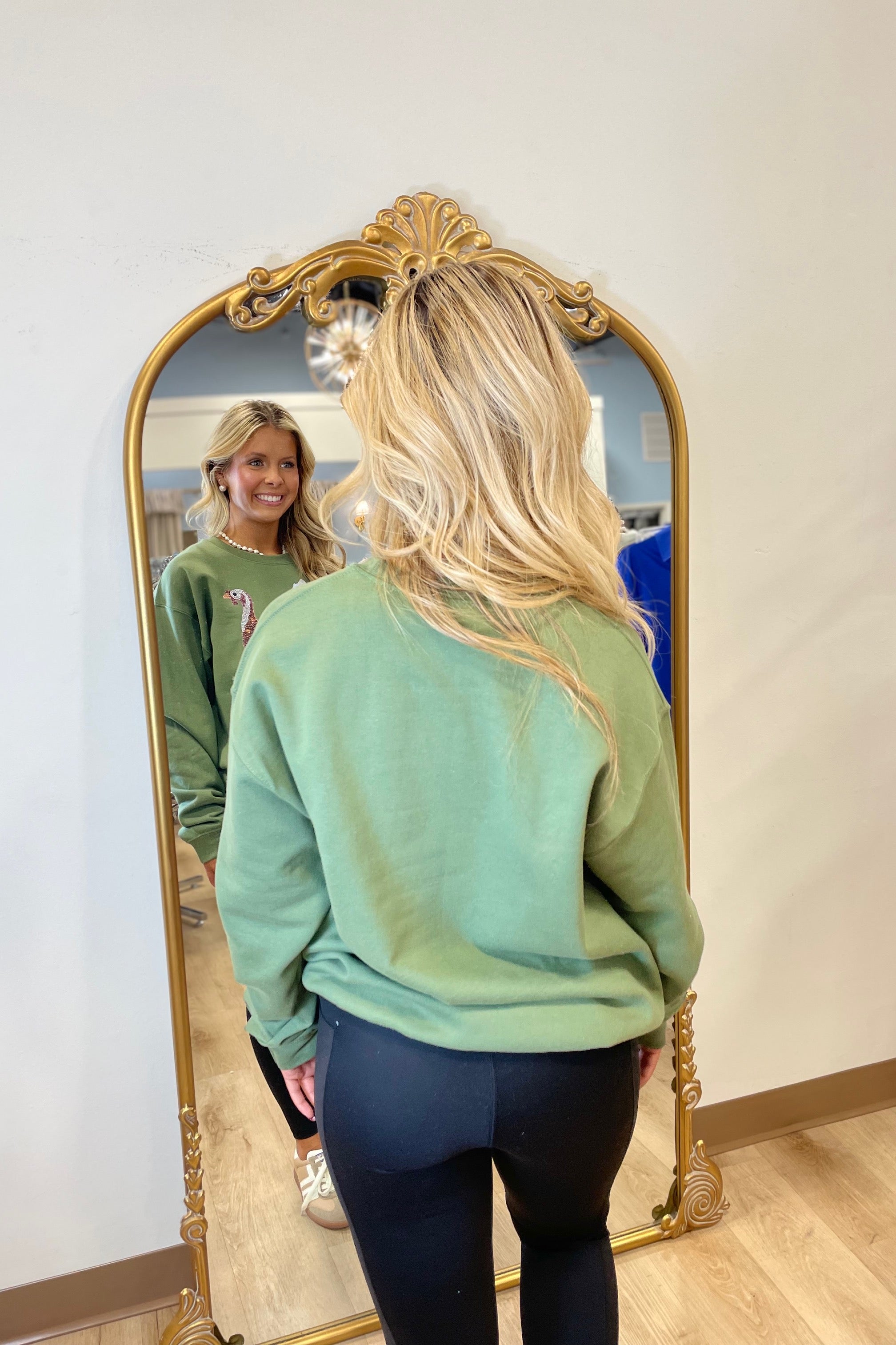 FAUX RHINESTONE In the Wild Crew Neck Sweatshirt Turkey Green