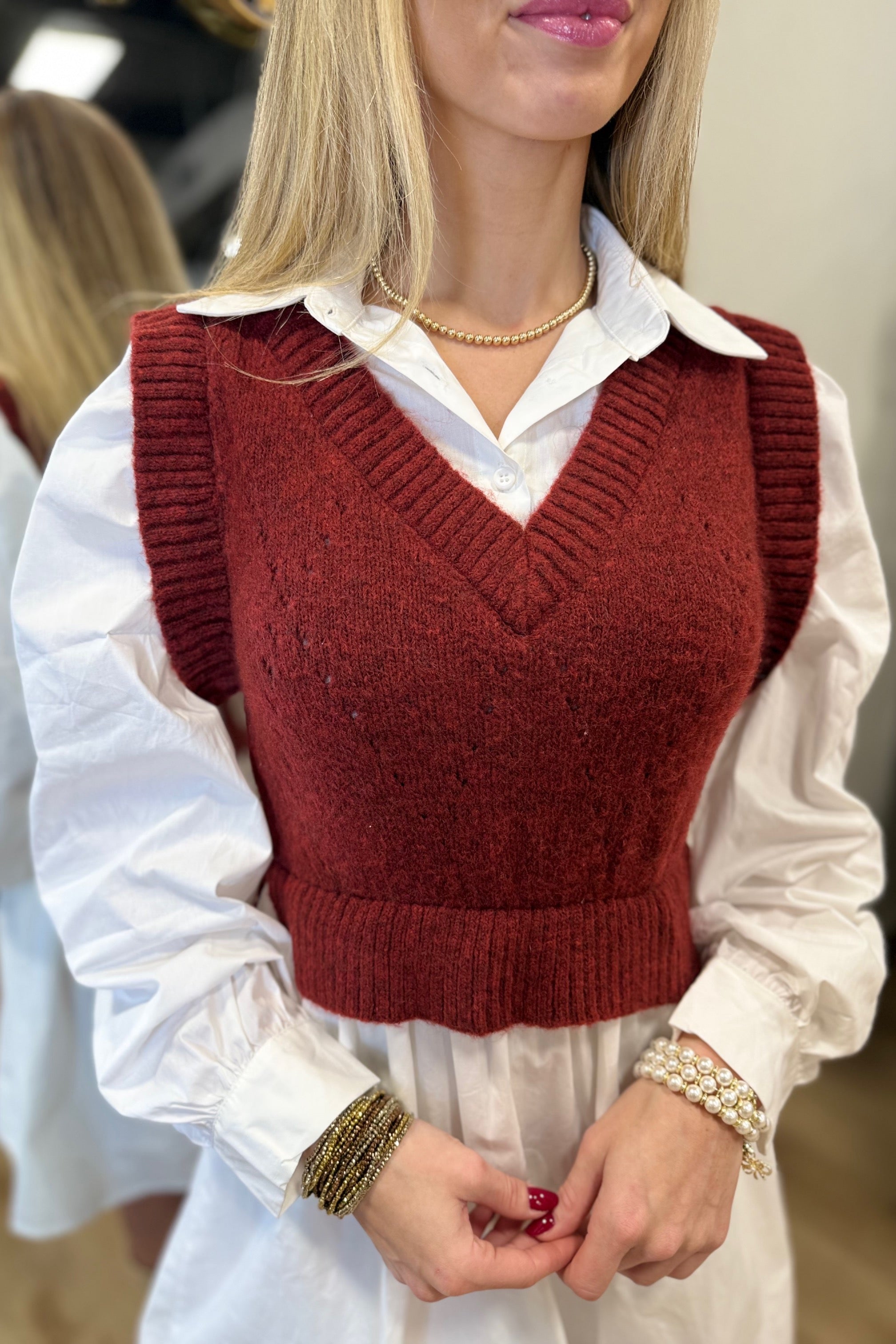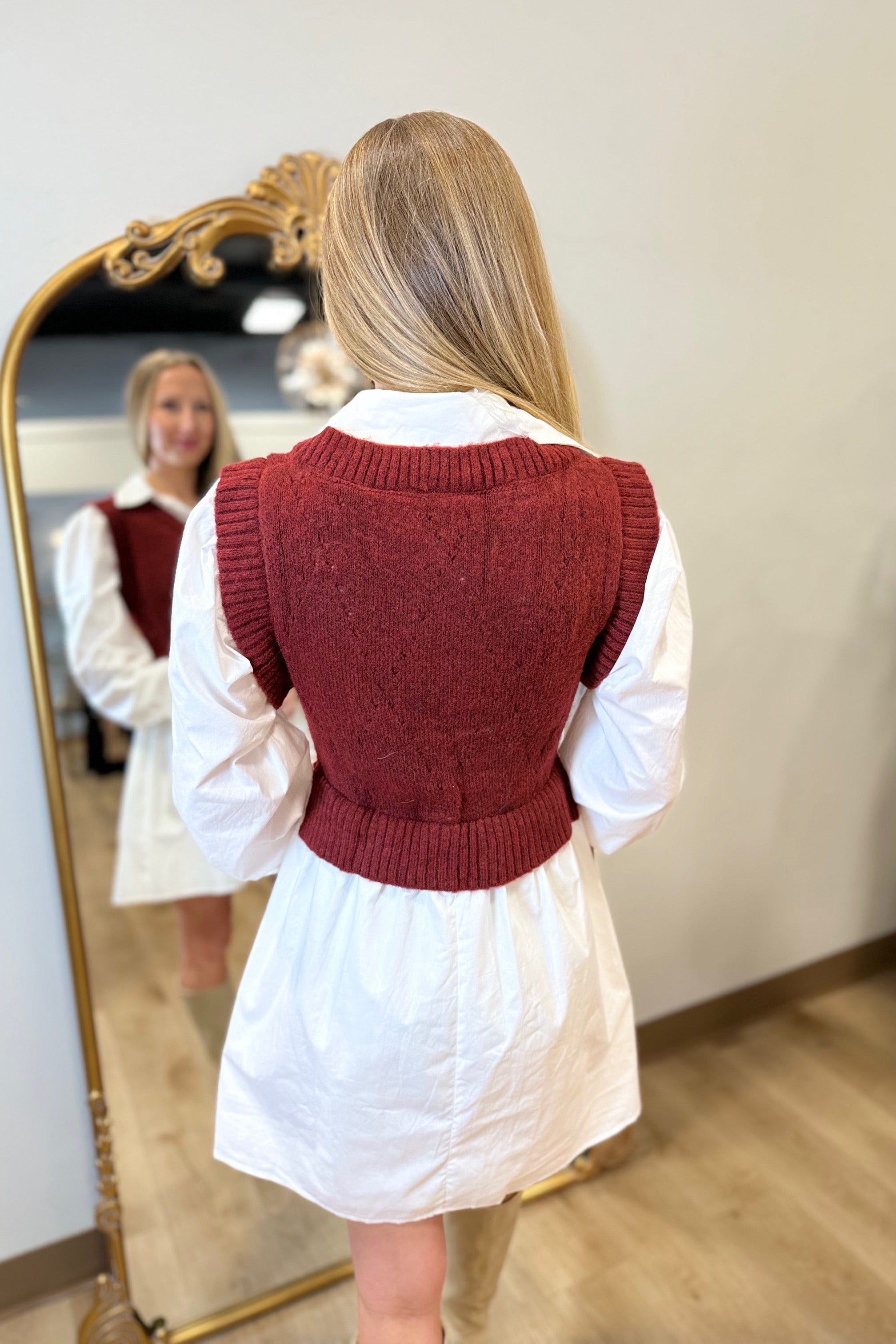 Jacquie the Label Isabelle Mixed Media Mini Dress Maroon