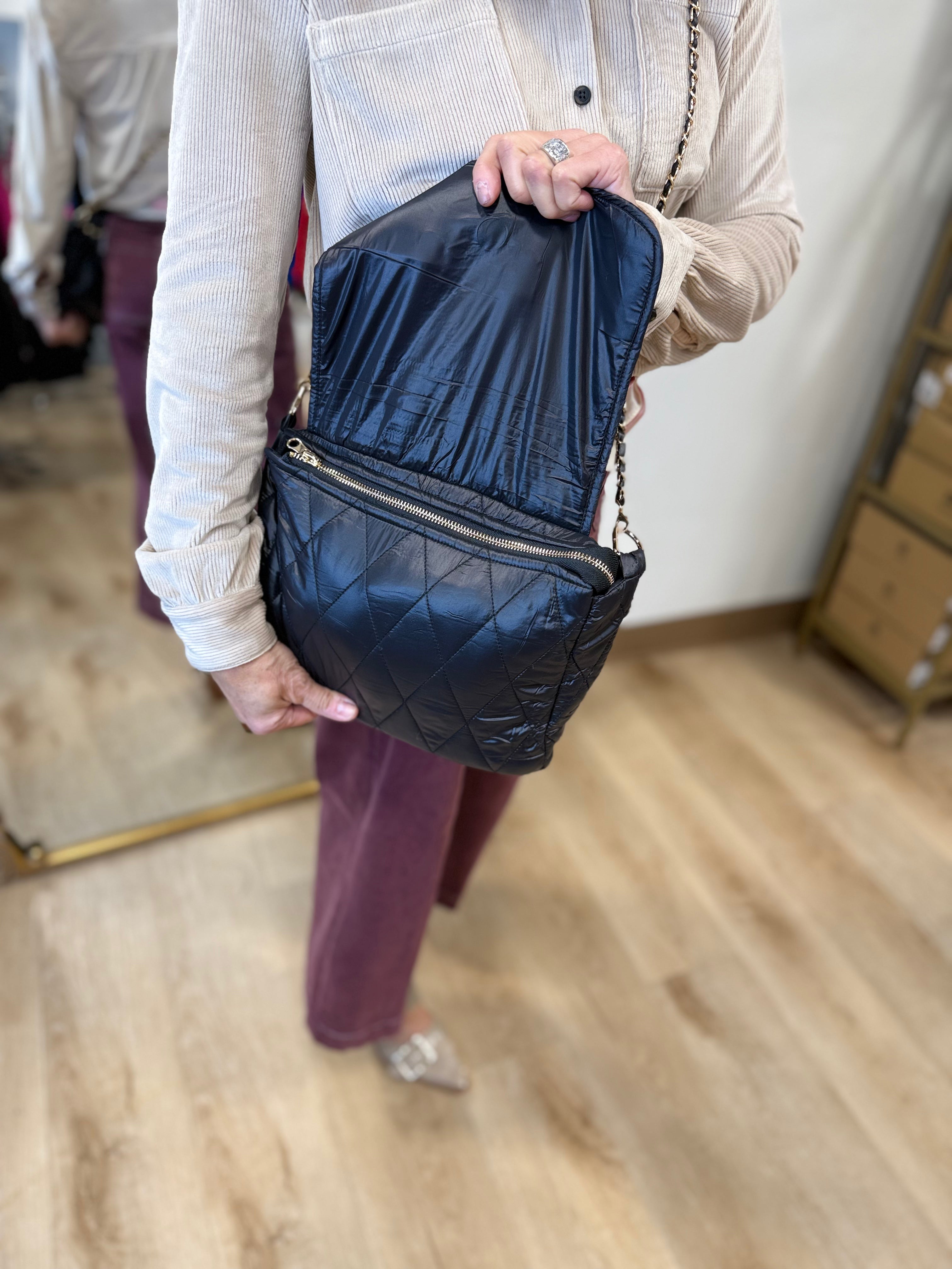 Joh Johya Puffer Jacket & Matching Puffer Crossbody Bag Black