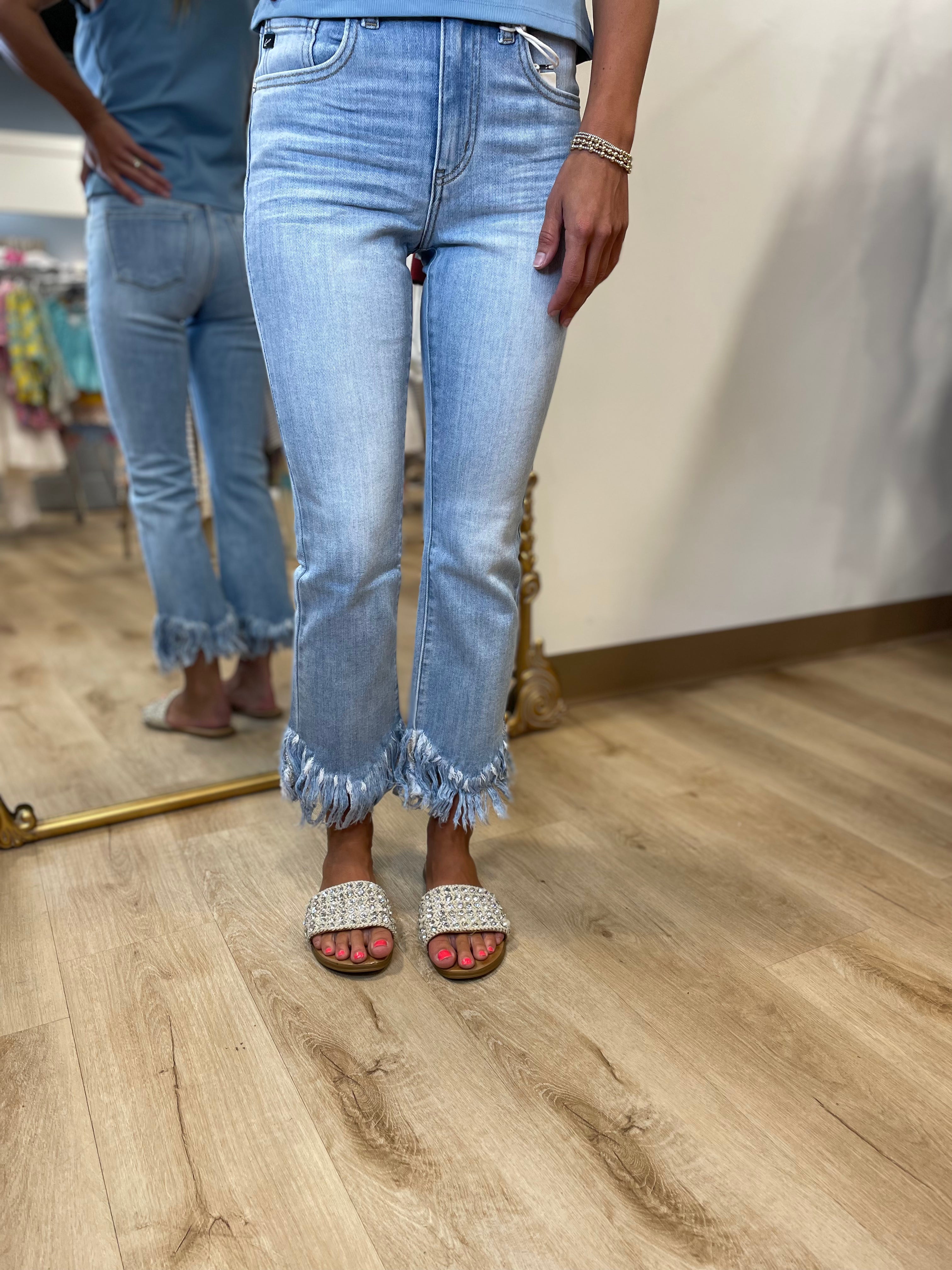 Kancan High Rise Boot Crop Jean Light Blue