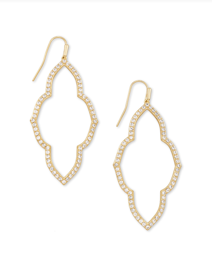 Proof that there’s no such thing as too much sparkle. The Abbie Gold Open Frame Earrings in White Crystal feature an elongated version of our signature medallion on its 10-year anniversary.