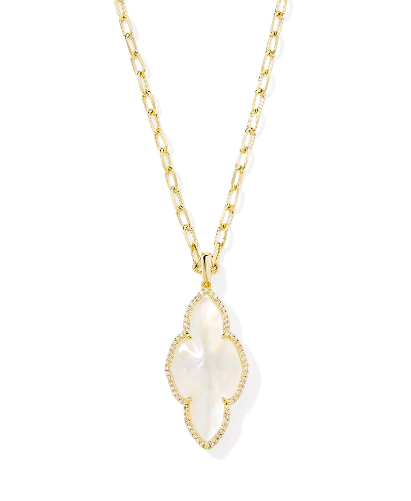 Kendra Scott Abbie Gold Pave Frame Large Long Pendant Necklace Ivory Mother of Pearl