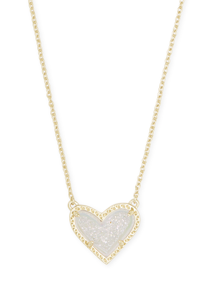 Kendra Scott Ari Heart Pendant Necklace Gold Iridescent Drusy