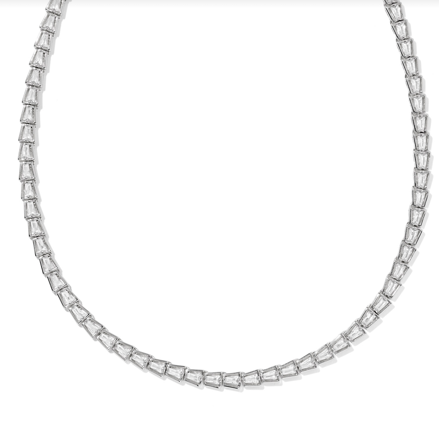 Kendra Scott Bella Silver Tennis Necklace White Crystal