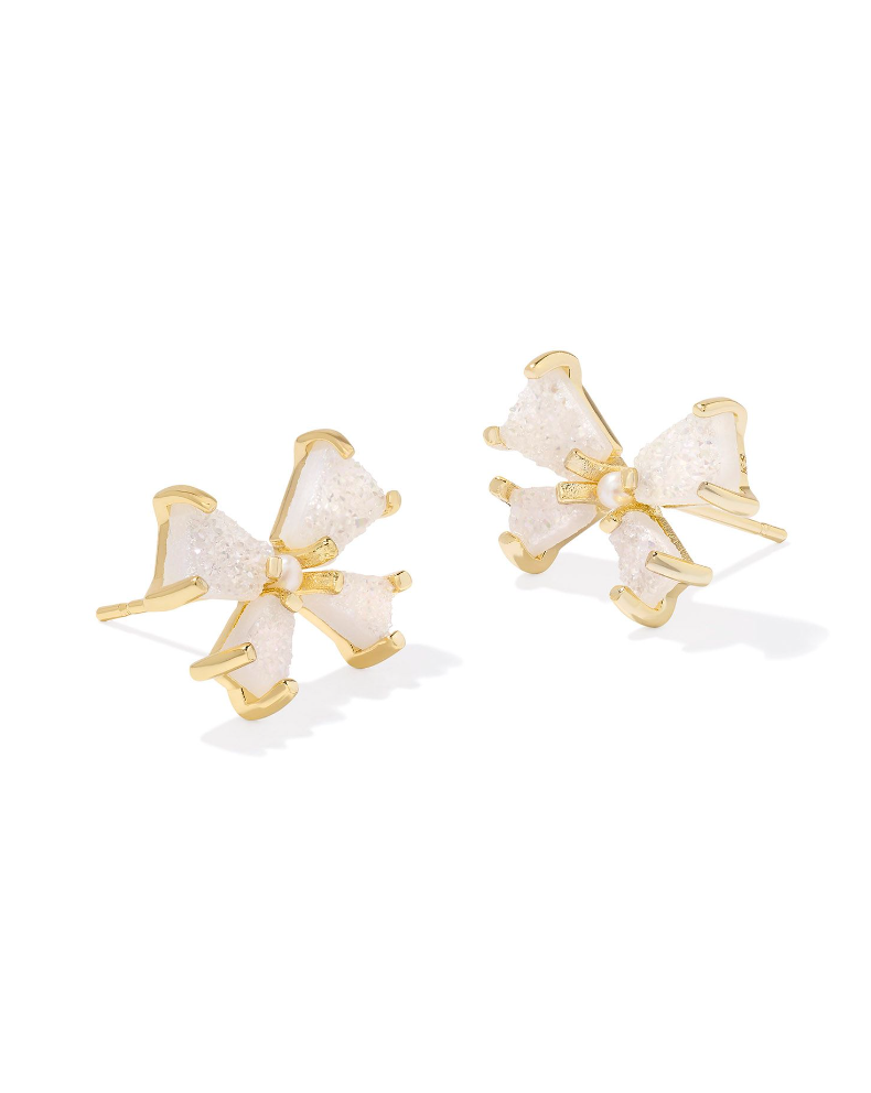 Kendra Scott Blair Gold Bow Small Stud Earrings Iridescent Drusy