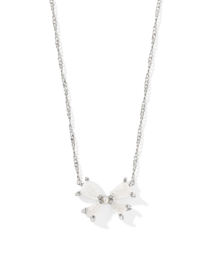 Kendra Scott Blair Silver Bow Small Short Pendant Necklace Iridescent Drusy