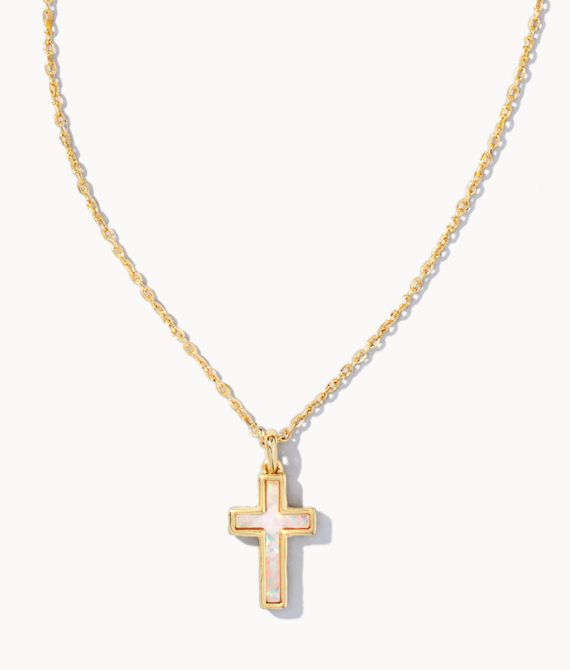 A personal reminder to add to your everyday collection. Keep a symbol of what's most meaningful to you close with the Cross Pendant Necklace in White Kyocera Opal.