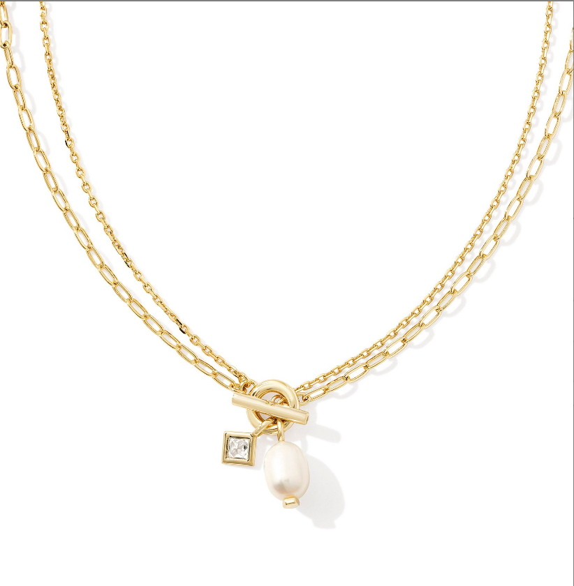 Kendra Scott Eve Gold Chain Multi Strand Necklace White Pearl