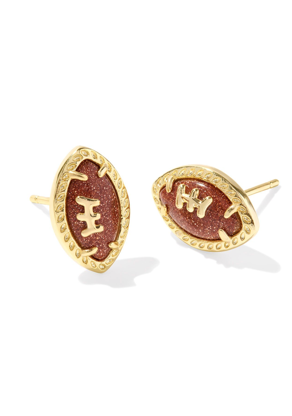 Kendra Scott Football Gold Stud Earrings Orange Goldstone