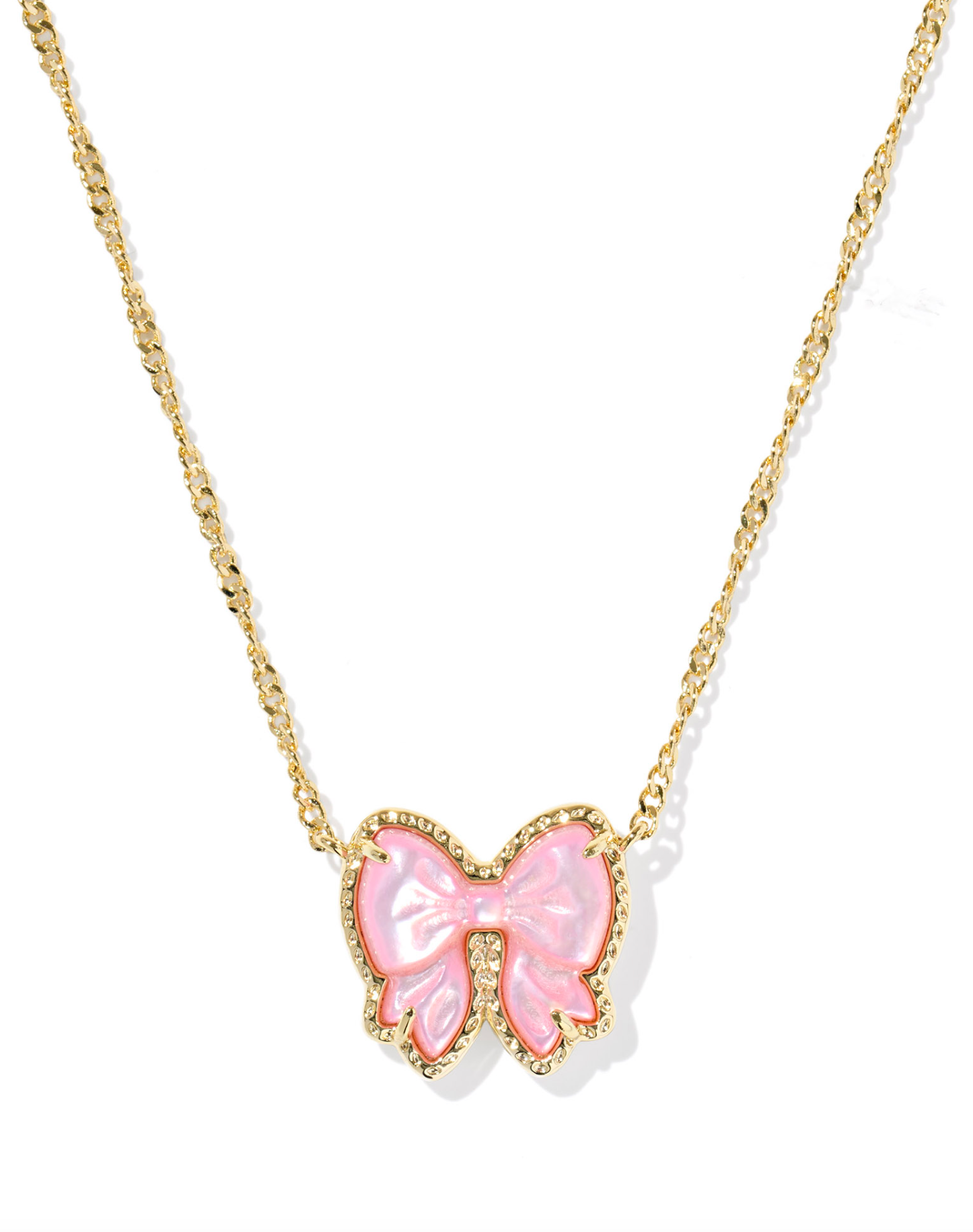 Kendra Scott Haley Gold Bow Short Pendant Necklace Blush Mother of Pearl