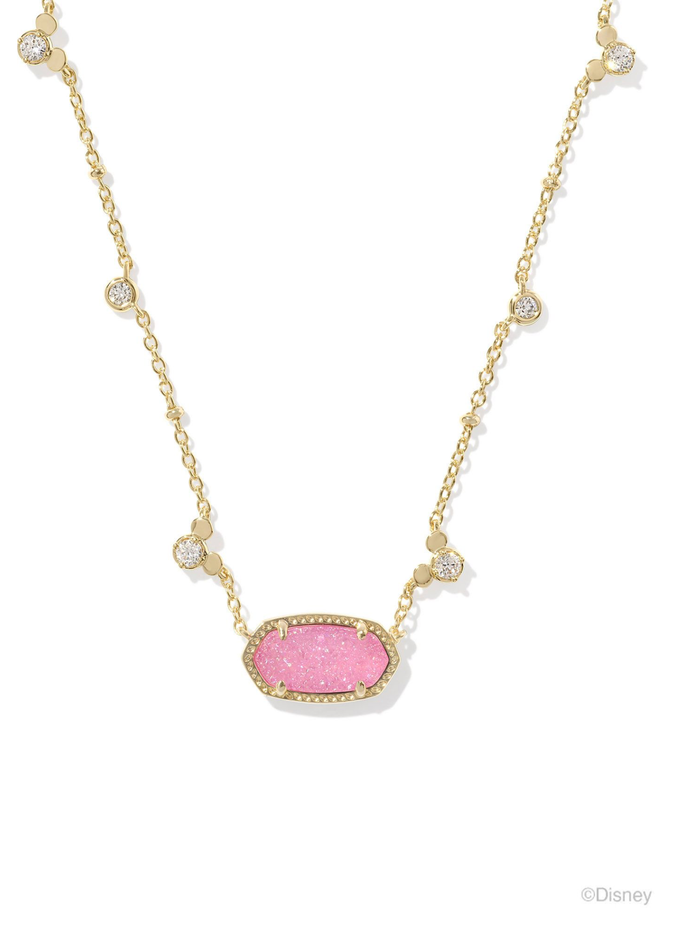 Kendra Scott Disney Mickey Mouse Elisa Necklace Gold Hot Pink Drusy