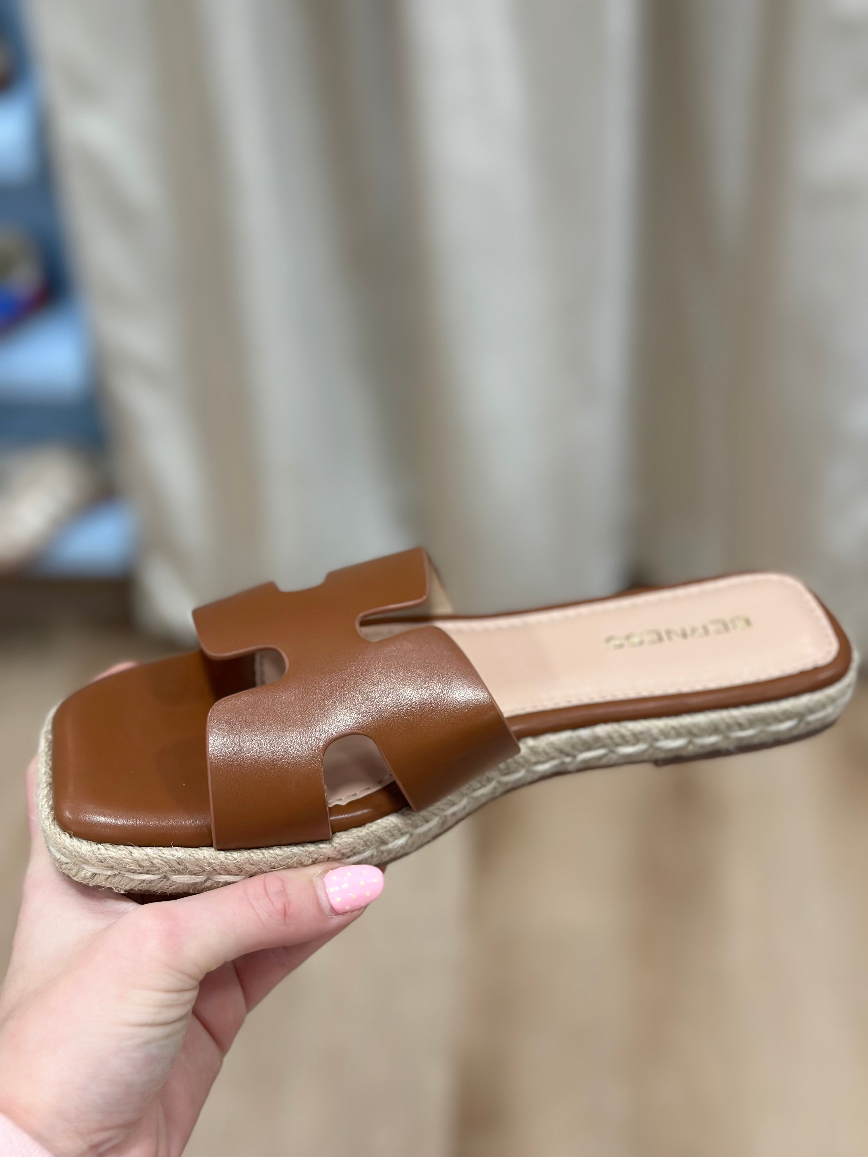 Kendra Slide Sandals Cutout H-Band Brown