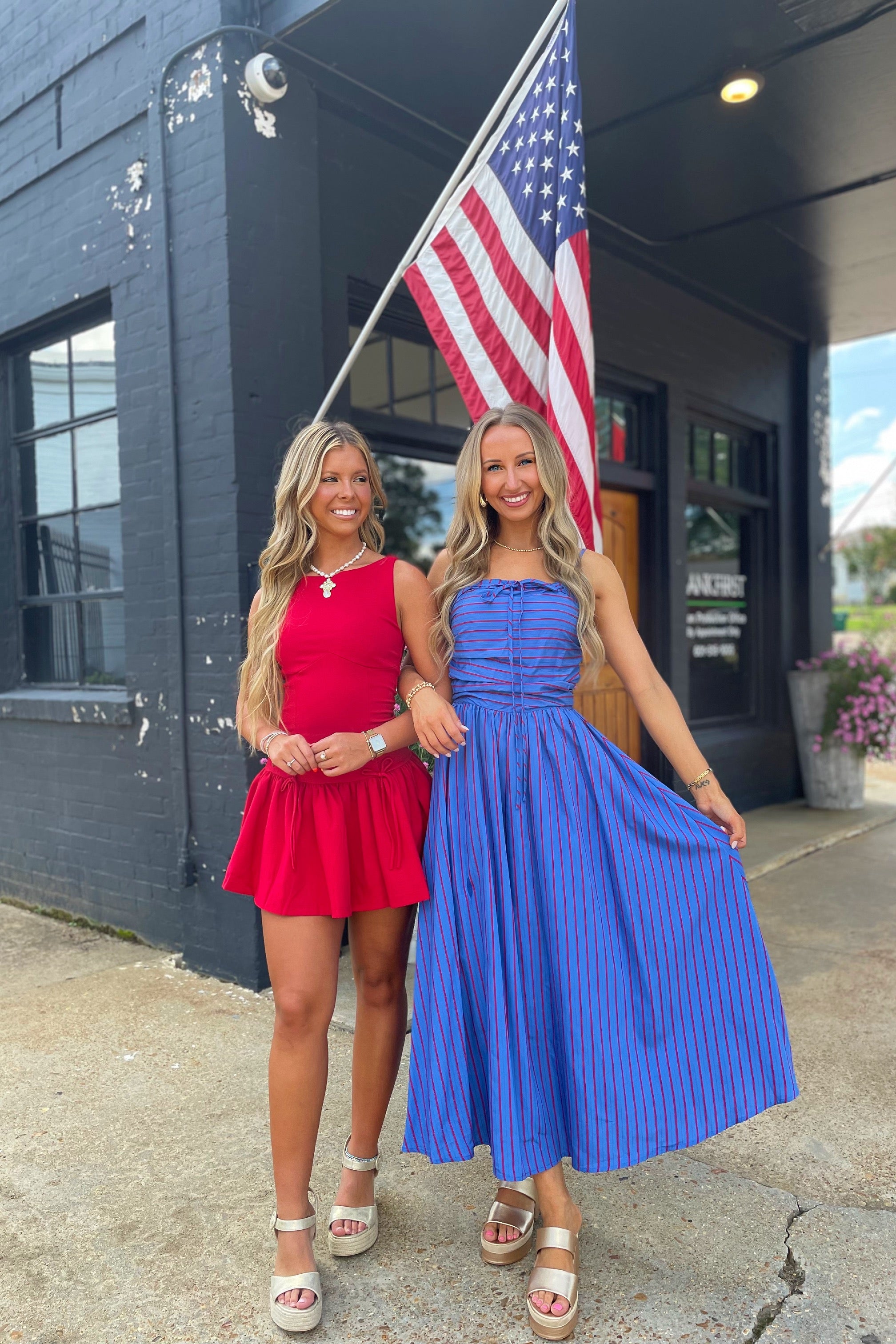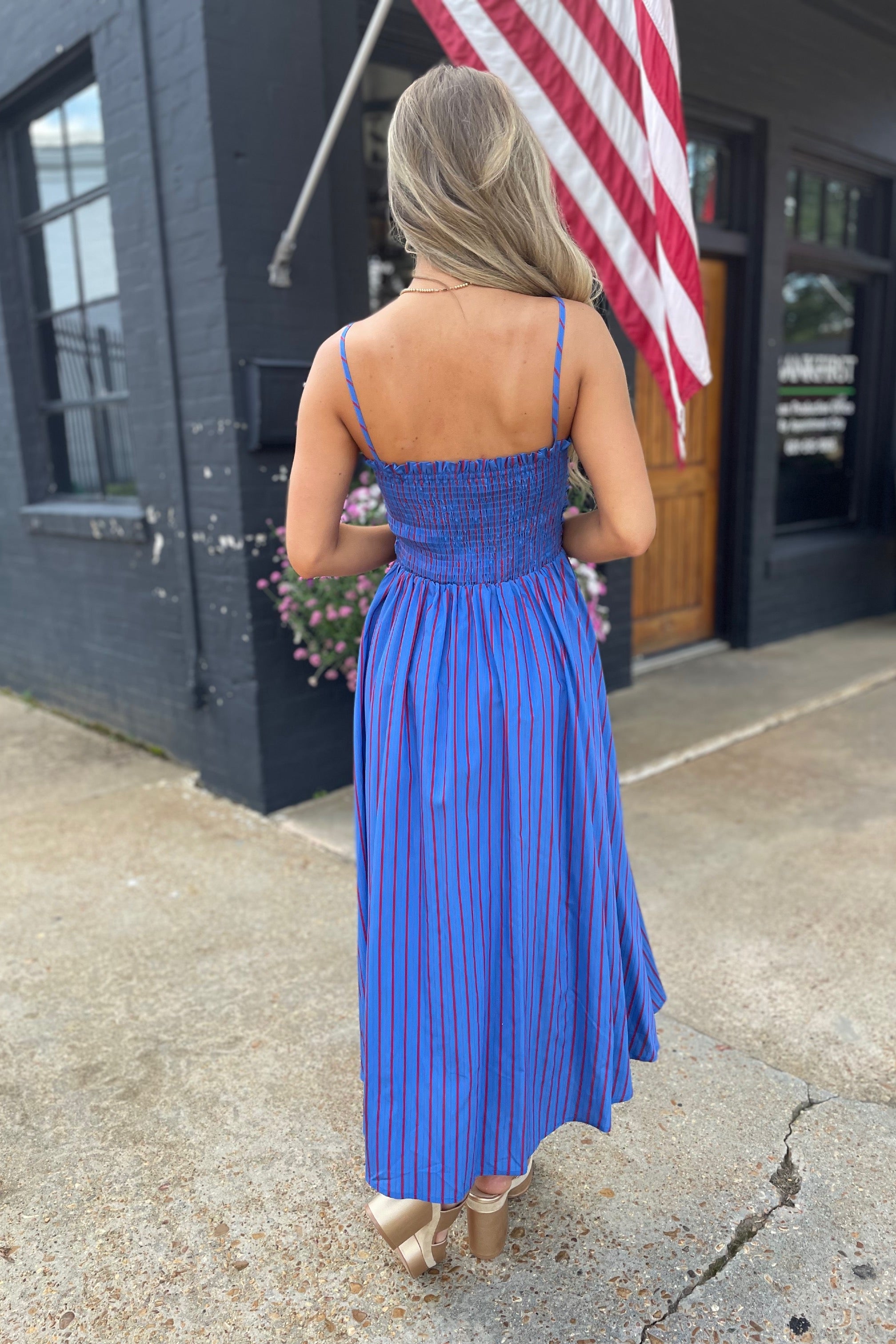 Laelia Stripe Spaghetti Strap Dress Maxi w Smocked Back