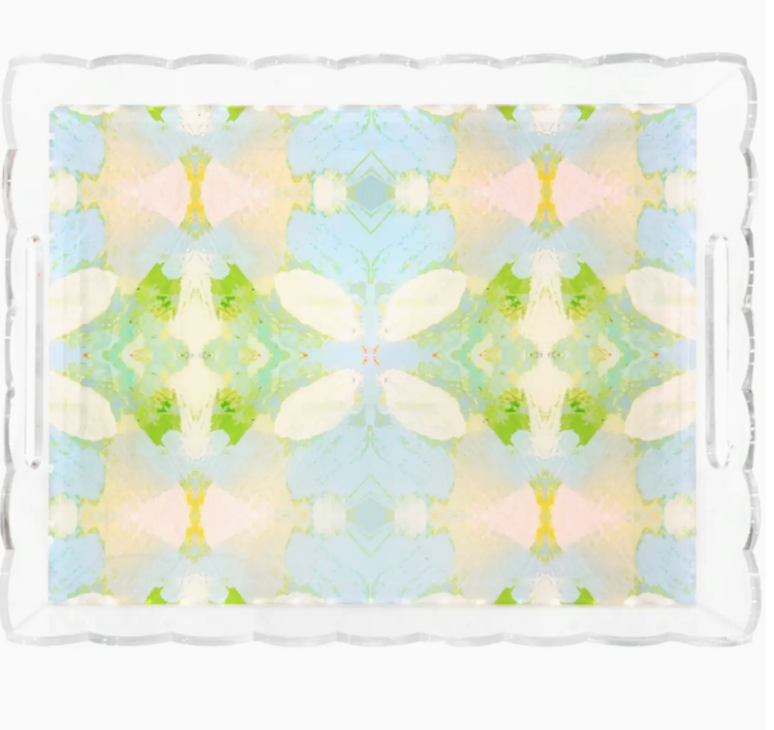 Add a touch of elegance to serving or decor with these Scalloped Acrylic Trays. Highlighted by Laura Park’s iconic prints, they’re perfect for entertaining or showcasing your style. -Size: 11’’ x 11’’ x 2’’ (11’’ x 13.5’’ x 2’’ including handles) -Print displayed under a layer of acrylic to avoid damage to the art.