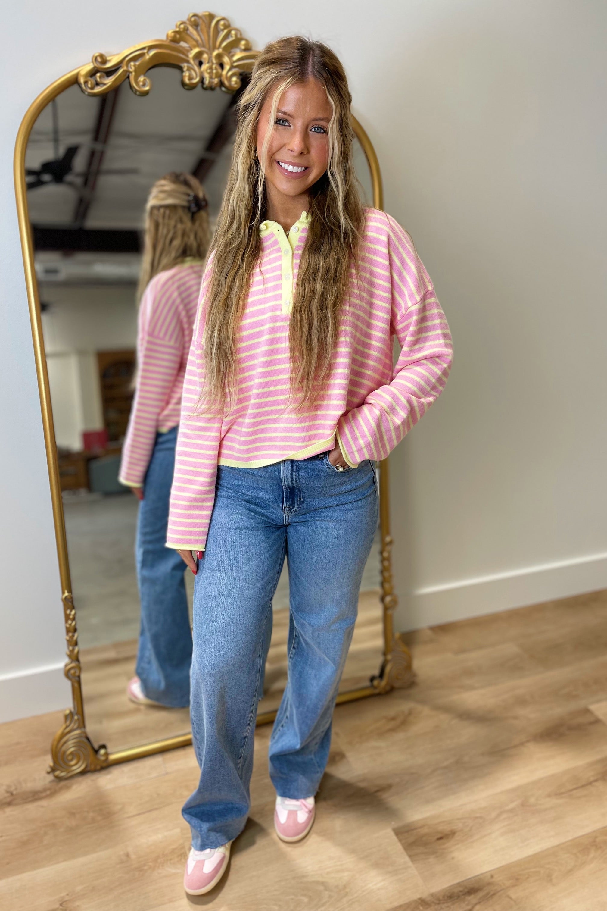 Lemonade Lane Henley Sweater Pink