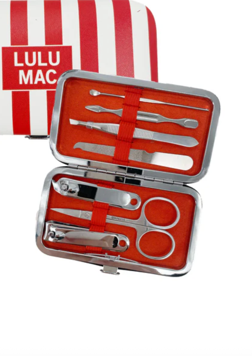 Brighten your nail care routine with the Blue/Red Stripe Darby Manicure Set! Featuring a cheerful blue stripe design, this set includes all the tools you need to keep your nails polished and playful wherever you go. Perfect for quick touch-ups or full pampering sessions on the fly!