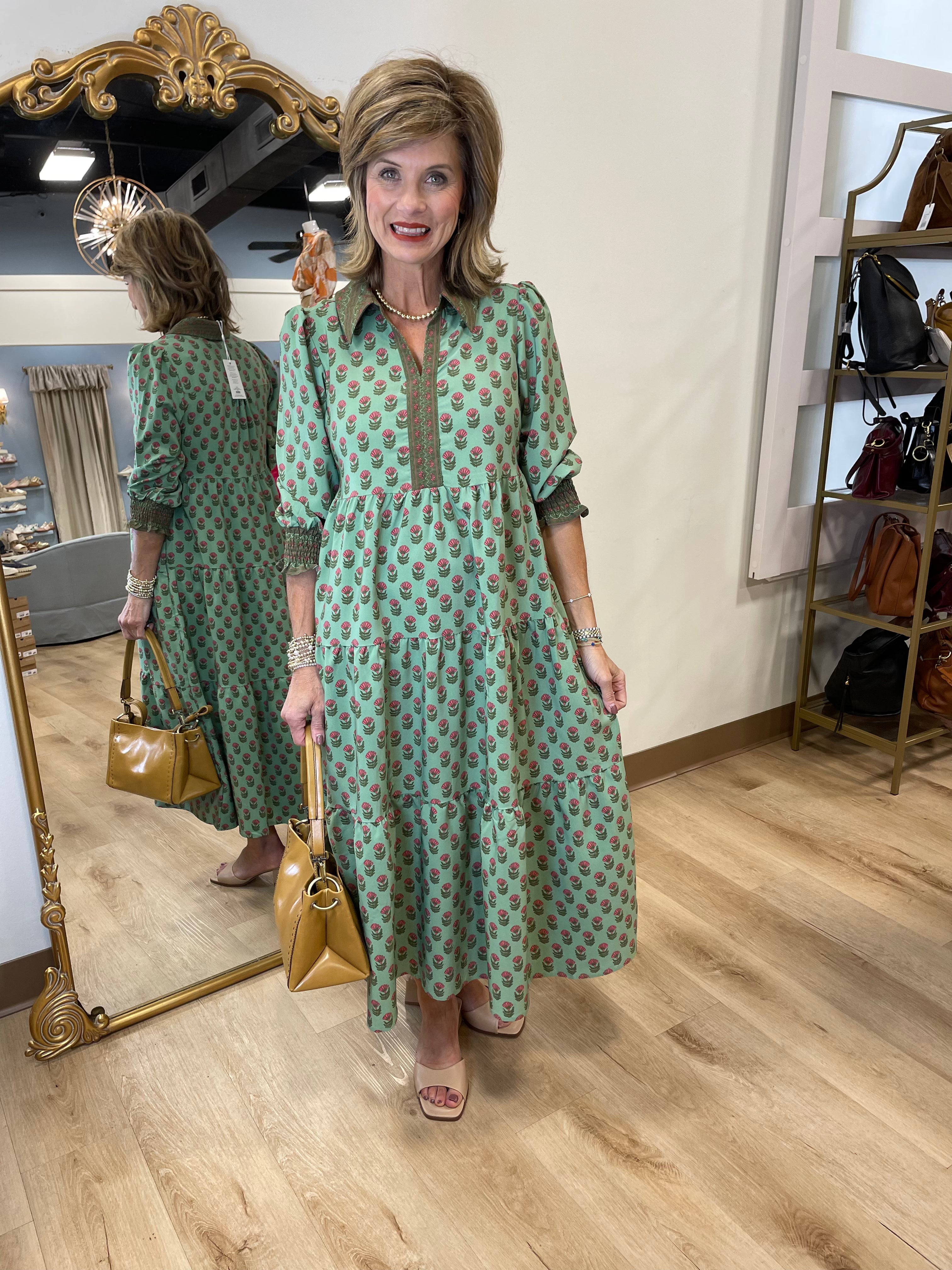 Mary Square Tamryn Floral Dress Green