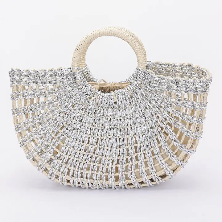 Metallic Faux Straw Tote Bag w/ Pouch * 16W*10H*3.5D * Polyurethane. * Introducing the "Metallic Faux Straw Tote Bag w/ Pouch" – a stylish blend of sustainability and elegance. Crafted from paper, this faux straw bag features a chic metallic finish and a convenient pouch, making it the perfect accessory for any occasion. Elevate your fashion game while embracing eco-friendly choices with this stunning tote.