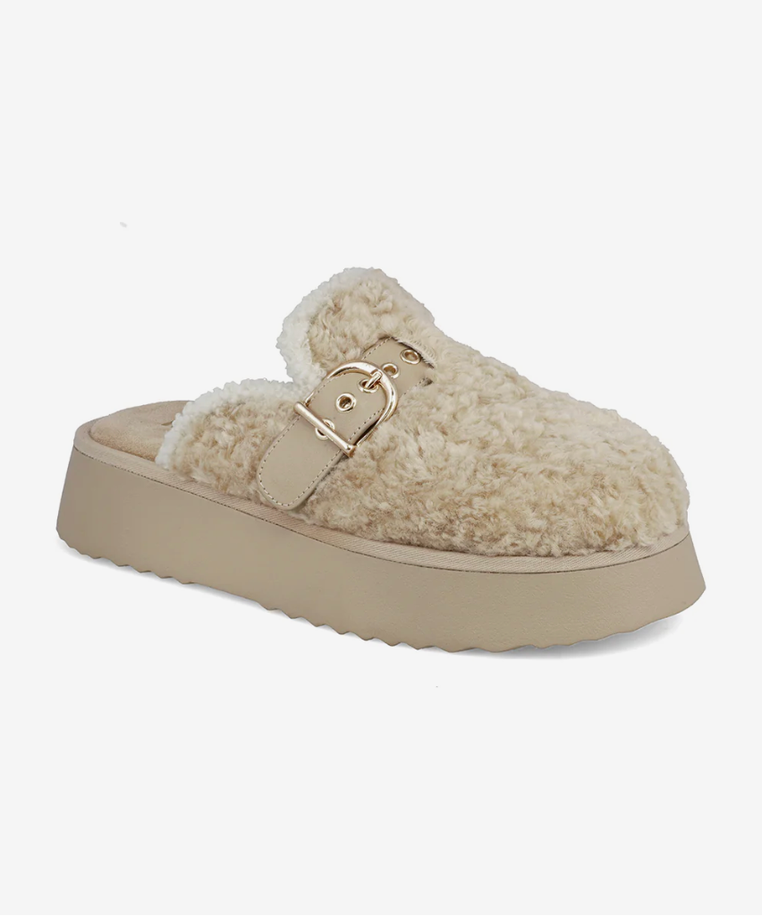 Feel put together and cozy with Sugary. Crafted from faux shearling and lined with soft plush, this mule also features a gold buckle for a chic look. Pair these 2.7-inch mules with everything from cropped denim to your favorite relaxed knits.