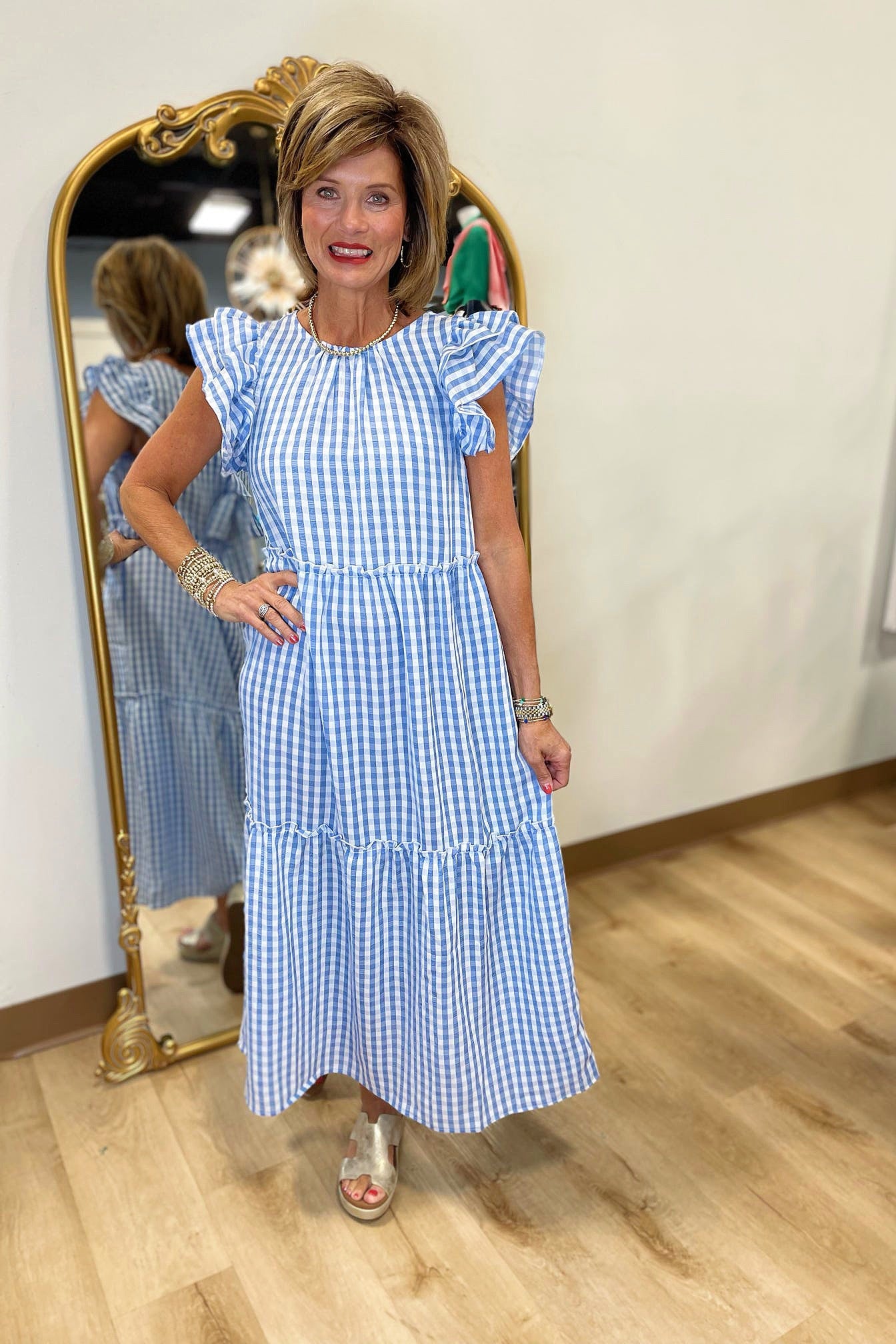 Mud Pie Blue Stripe Bardot Maxi Dress.