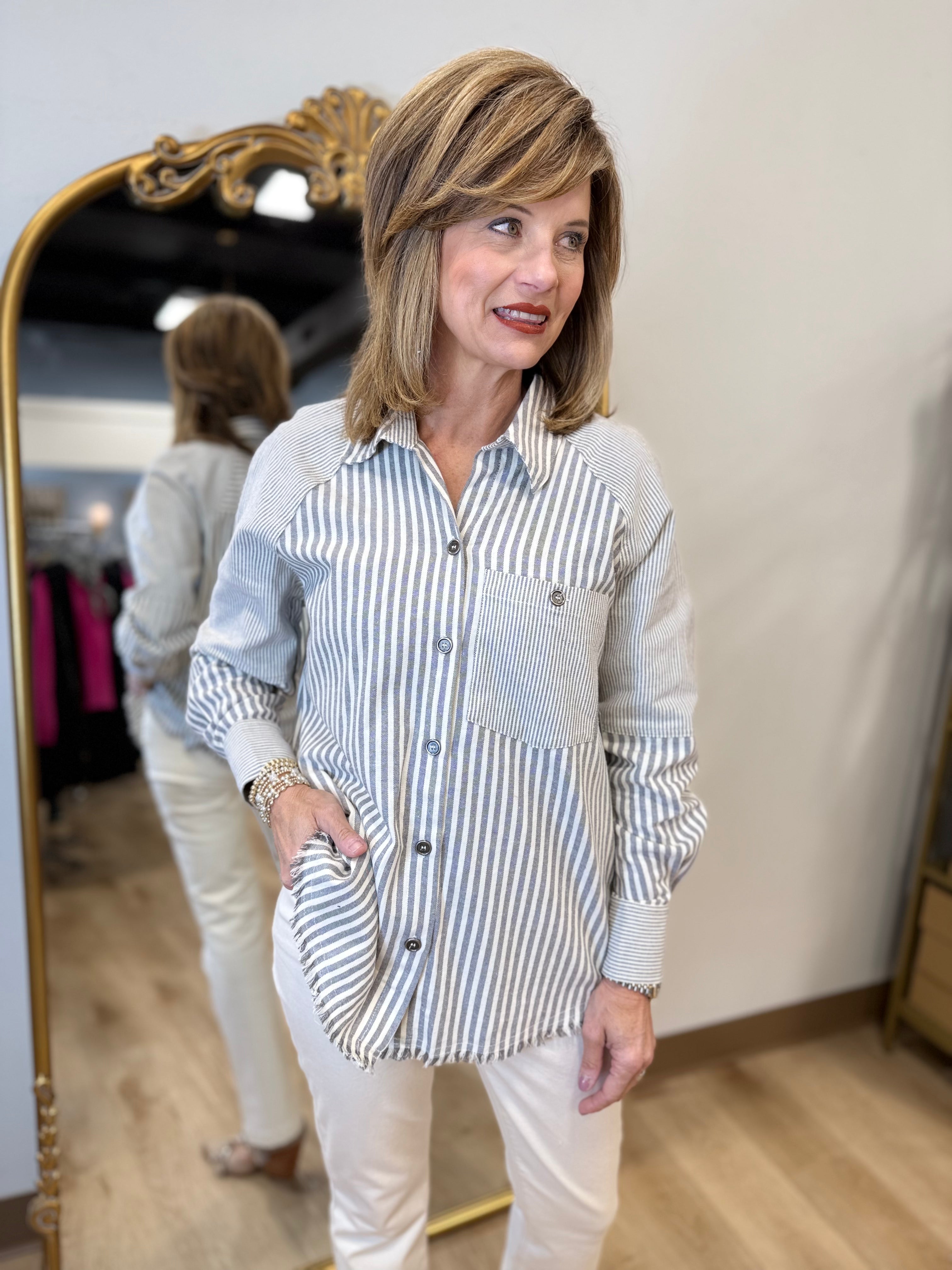 Multiples Cuffed Long Sleeve Drop Shoulder 2 Pocket Shirt Winter Granite