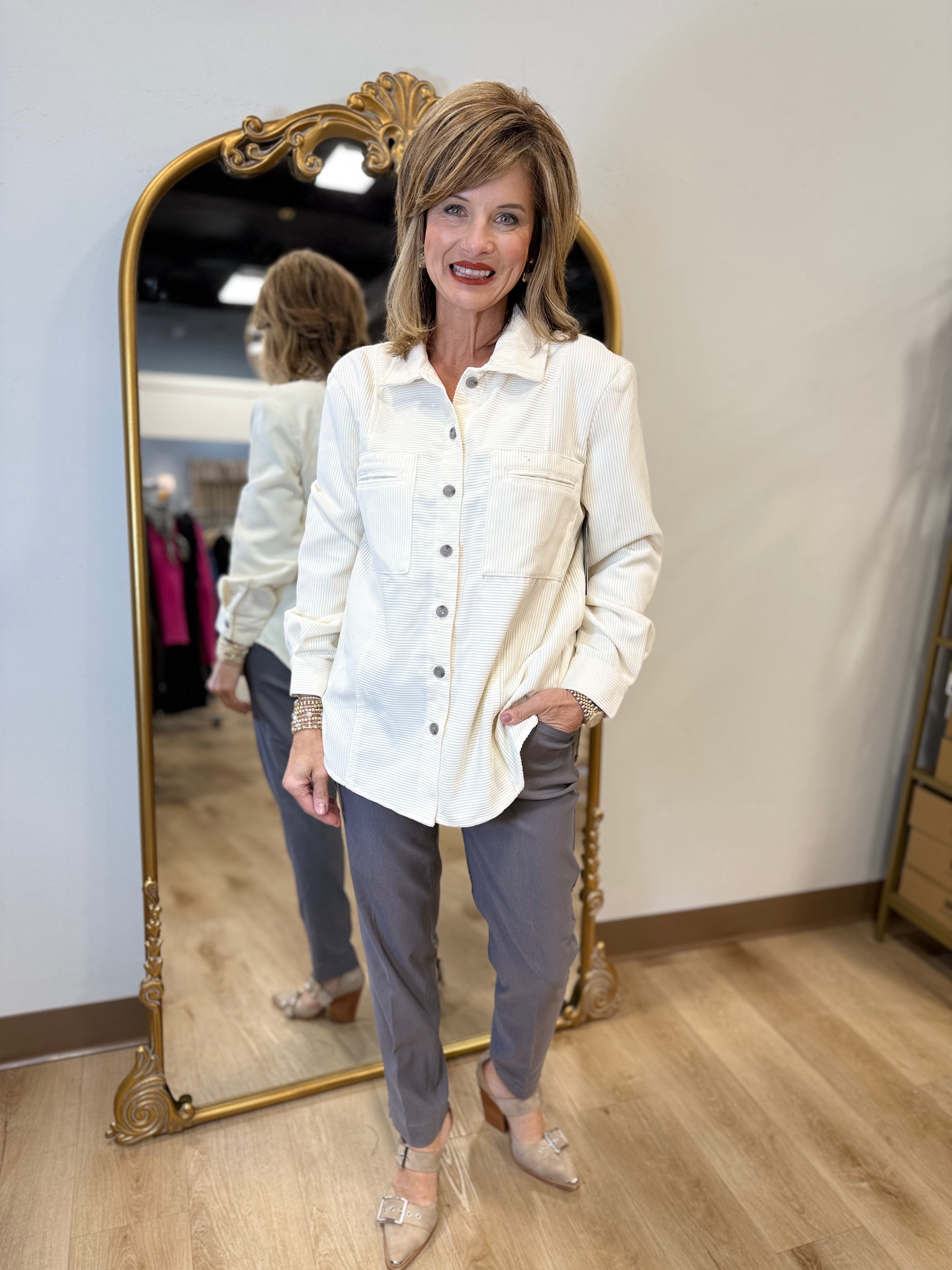 Multiples Cuffed Long Sleeve Drop Shoulder 2 Pocket Shirt Winter White