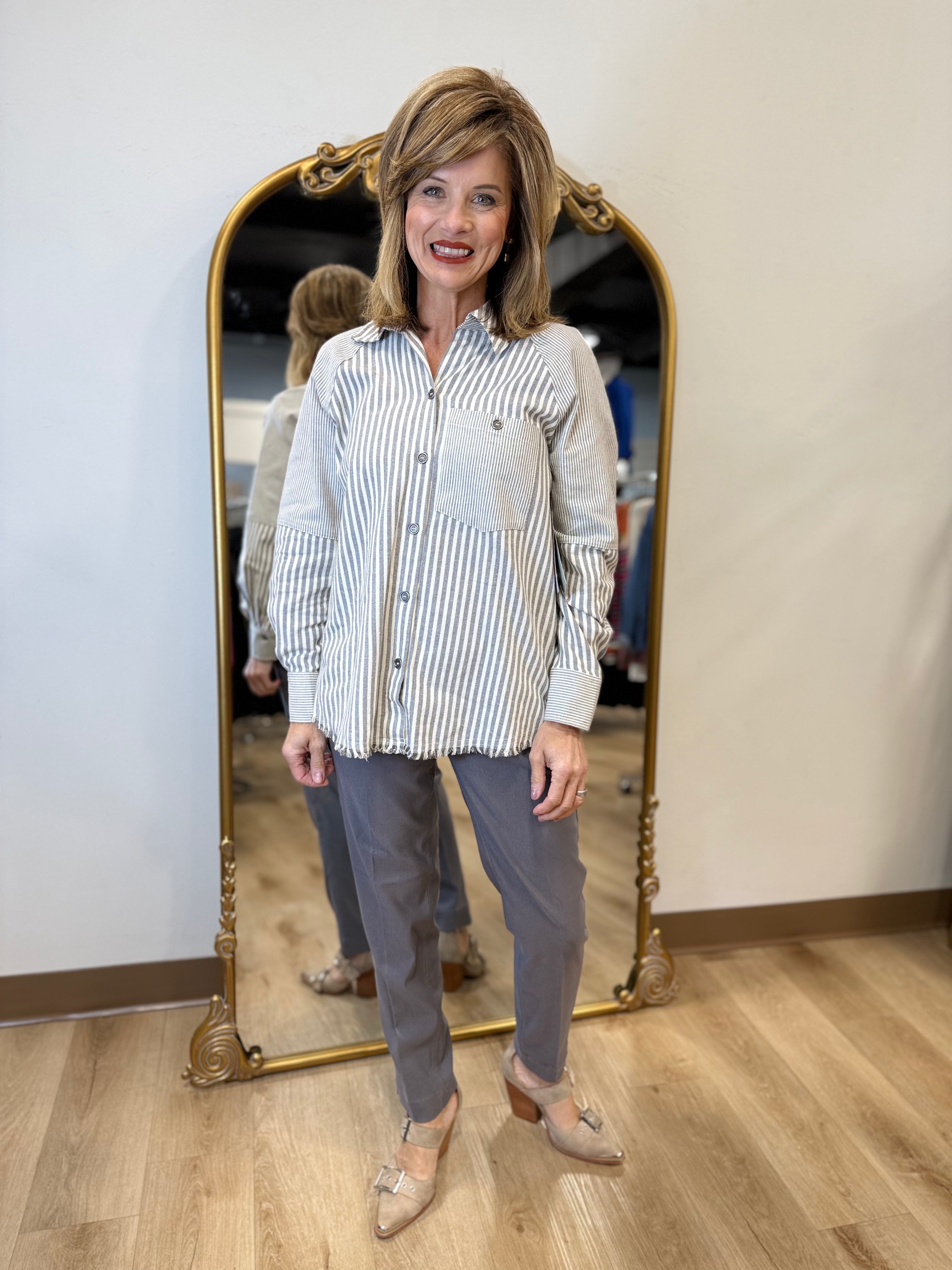 Pictured here w Multiples LS Button Front Shirt Granite.