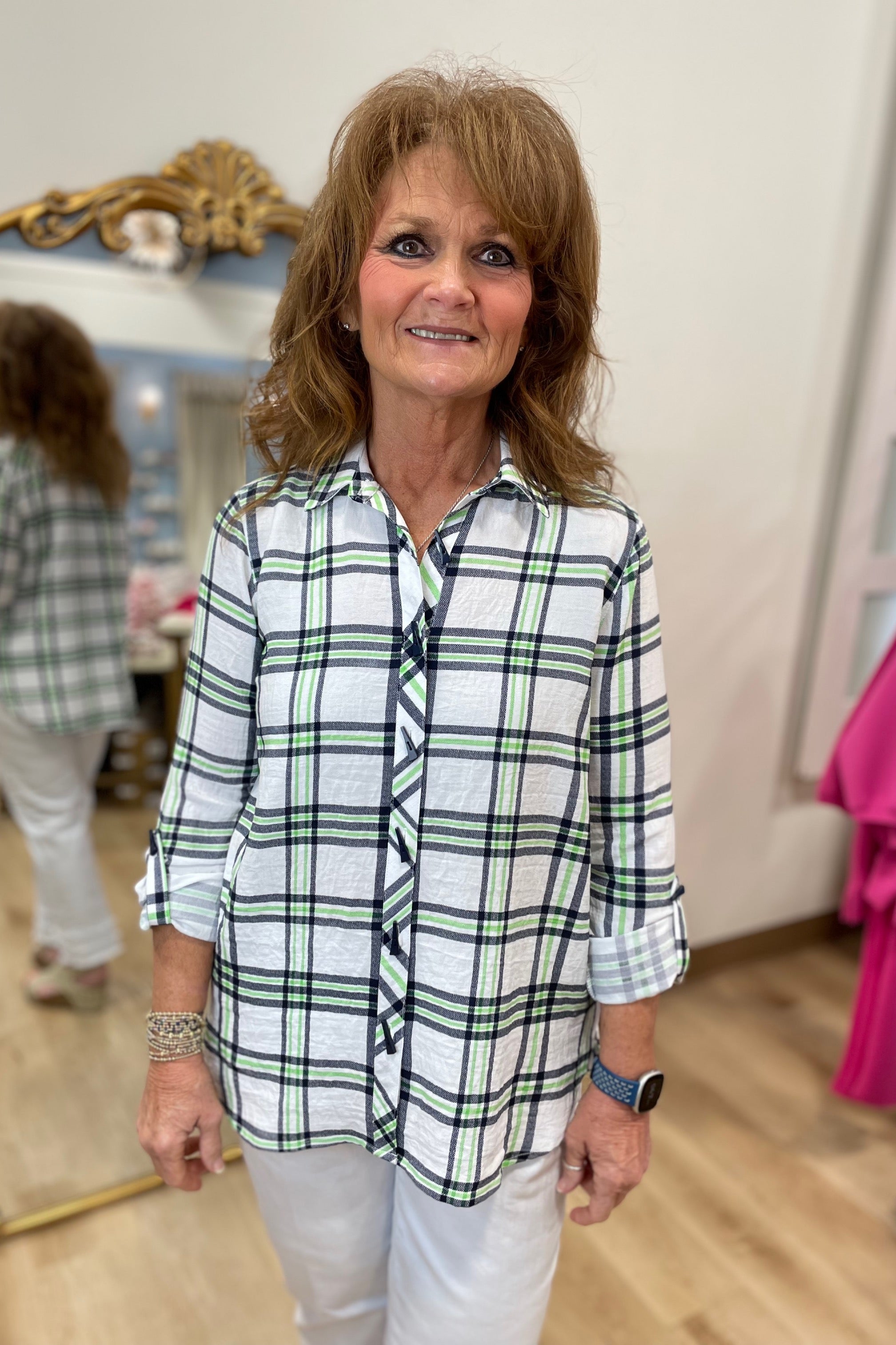 Multiples Roll Tab Button Front Hi Lo Top Multi