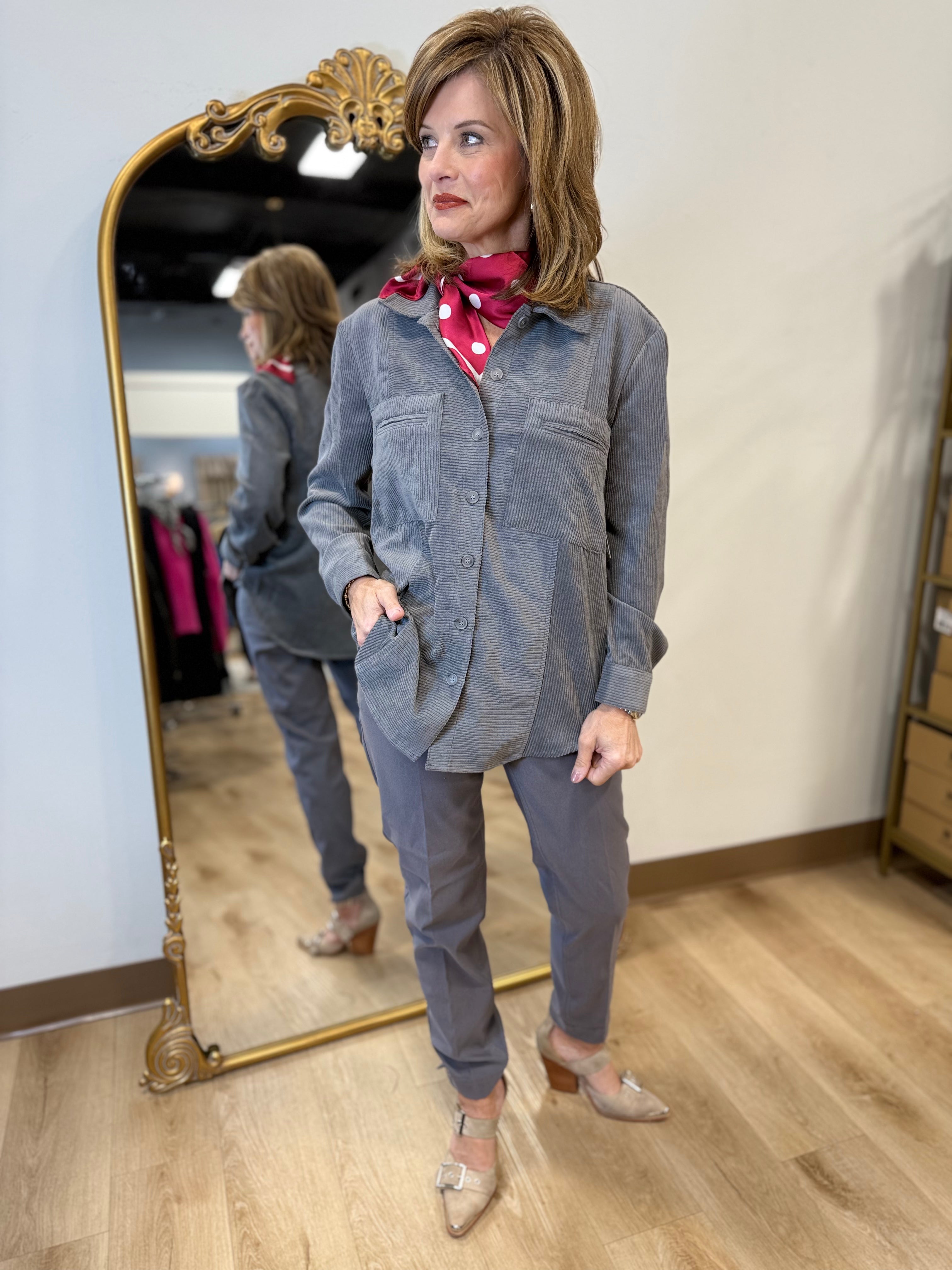 Multiples Cuffed Raglan Long Sleeve 1 Pocket Button Front Shirt Granite